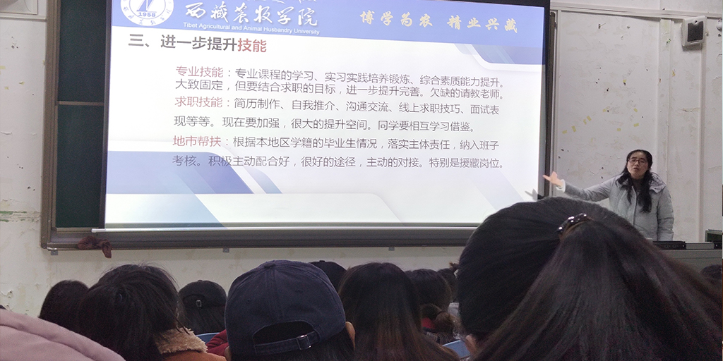 为切实做好我院毕业生的就业工作,帮助毕业生们进一步树立正确的就业观和择业观,保证我院就业创业工作顺利展开。我院于4月3日晚19:30在1107教室举行了毕业生就业创业再动员大会。此次大会由食品科学学院院长肖振红主讲,食品科学学院党委副书记索朗才旺、学生科辅导员土旦次仁老师和全体毕业生参会。