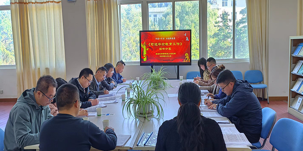 读书分享由教工党支部组织,教师党员同读《习近平论教育工作》,深入领悟习近平总书记关于教育思想,提升教书育人本领。