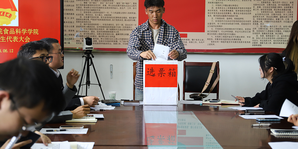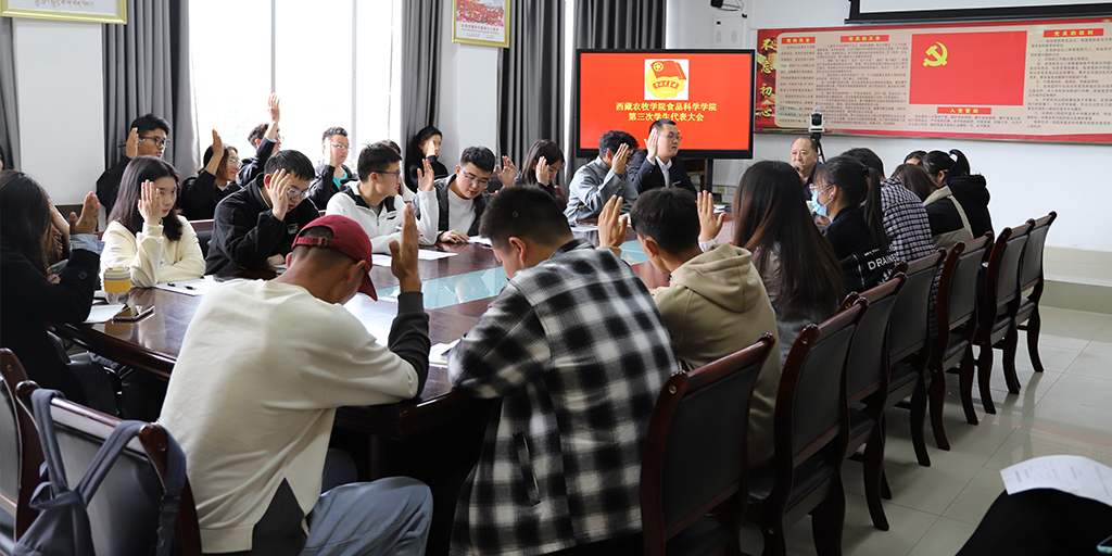 2023年6月12日下午食品科学学院召开第三届学生代表大会。食品科学学院党委书记洛桑次旦同志、学生科辅导员次仁措老师、第三届学生代表大会委员及各班学生代表出席会议。
