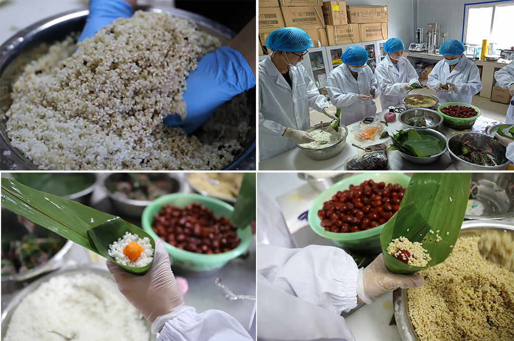 我们来做营养又美味的粽子。食品专业学生利用应用营养学、食品感官评价知识设计粽子的物料配方及工艺,确定了大枣蜜枣豆沙牛肉羊肉咸蛋黄六种粽子的制作工艺。