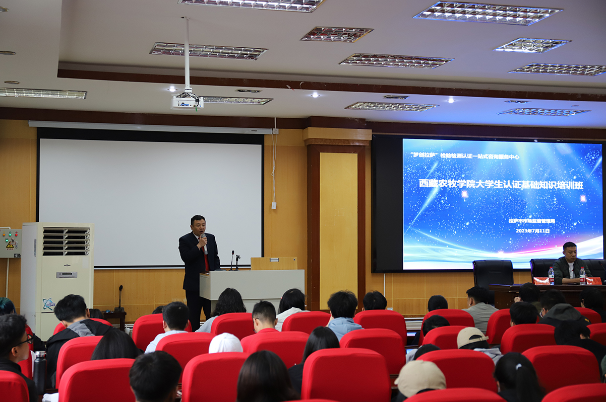 为进一步办实事、解难事,促进毕业生实现高质量就业。2023年7月11日,食品科学学院联合拉萨市市场监督管理局“梦创拉萨”检验检测认证一站式咨询服务中心举办认证基础知识培训,培训由食品科学学院教授辜雪冬主持,由拉萨市市场监督管理局高级工程师岳克旭主讲,食品科学学院党委书记洛桑次旦出席开幕式并讲话,食品科学学院教师刘磊,拉萨市市场监督管理局谢浏路,2020级食品科学与工程、食品质量与安全本科生及部分其他年级本科生。