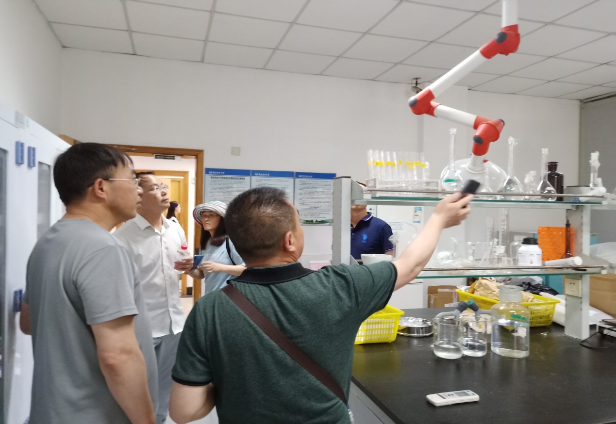 在徐涵湄实验师的带领下,参观了南京林业大学生态学科实验室。就实验室药品存放、废液暂存设施、大型仪器预约使用等方面进行交流。