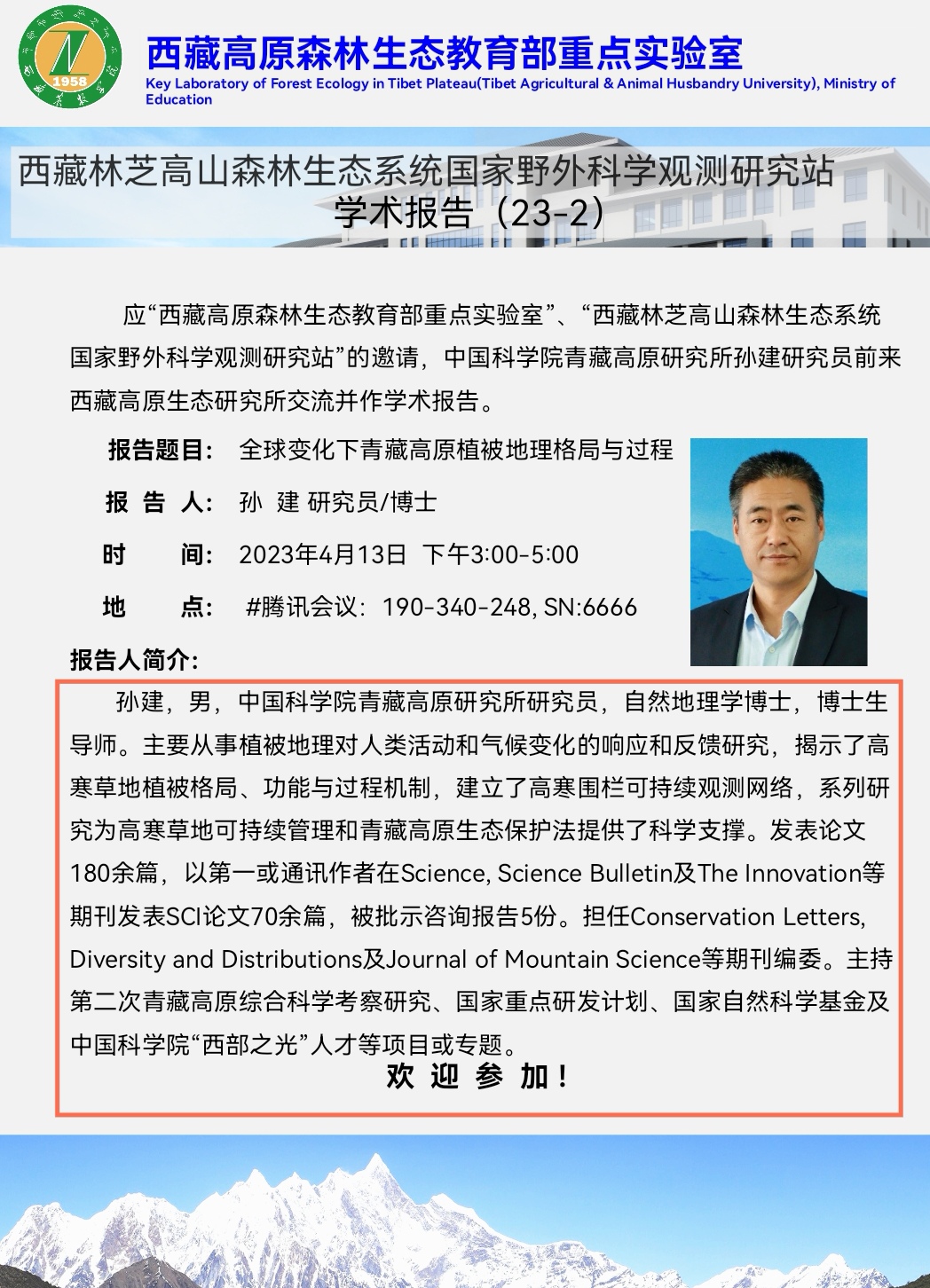 学术报告:全球变化下青藏高原植被地理格局与过程