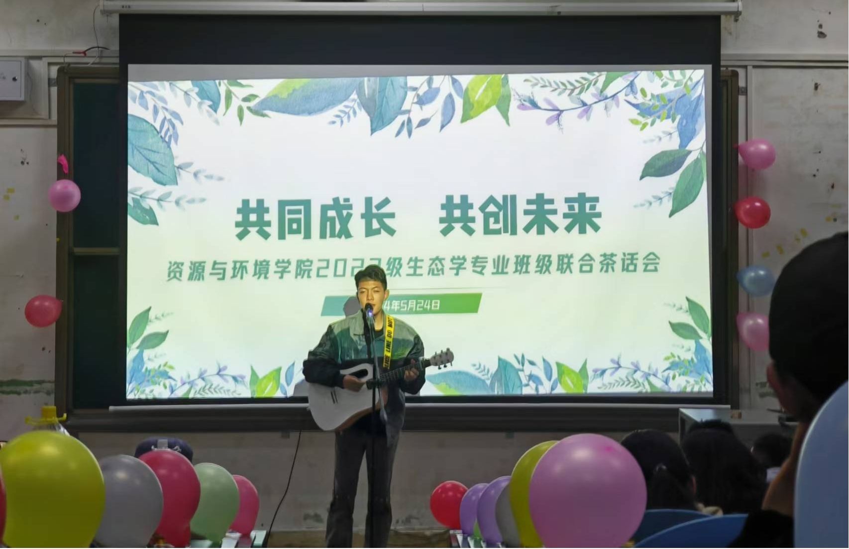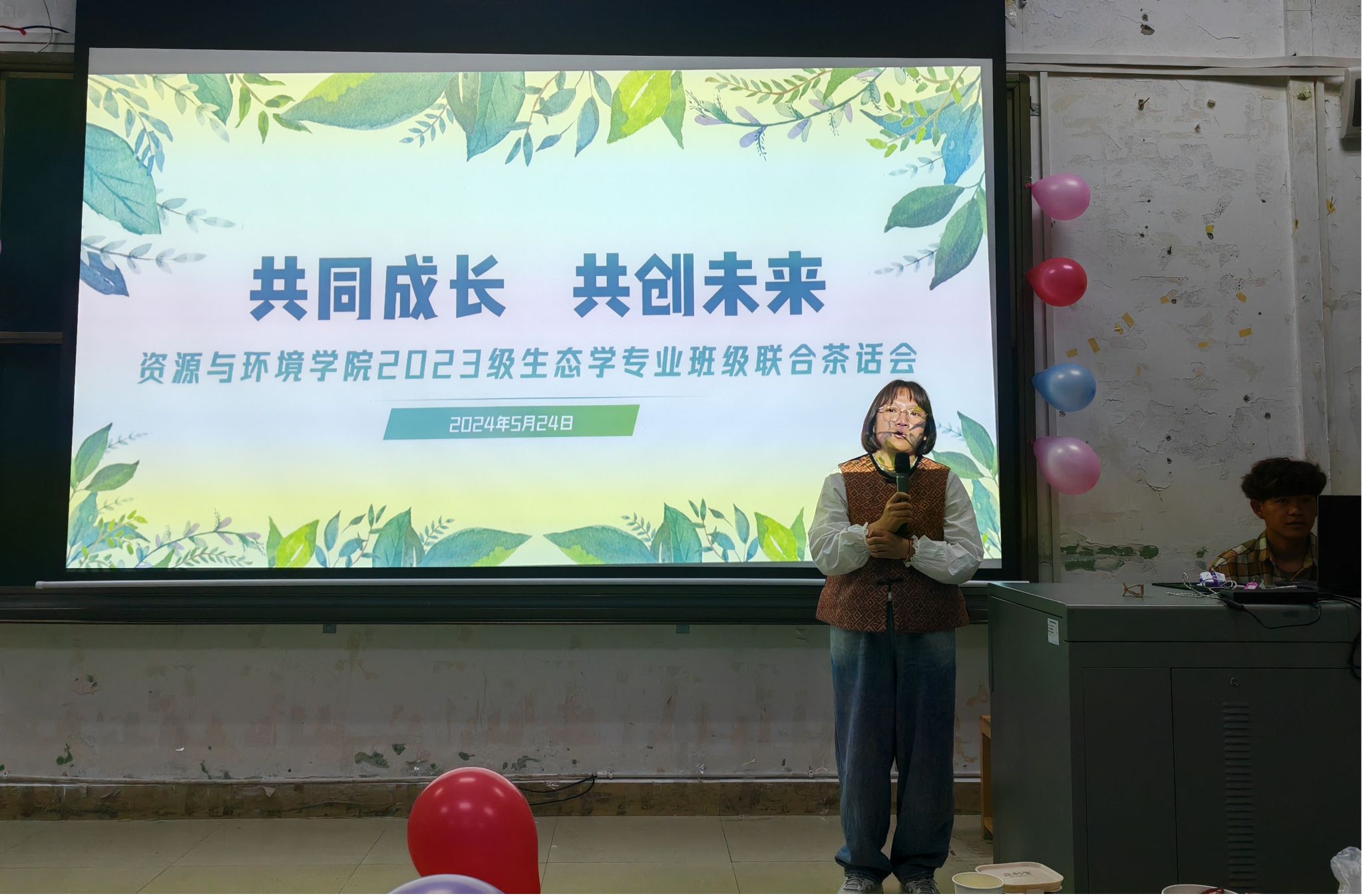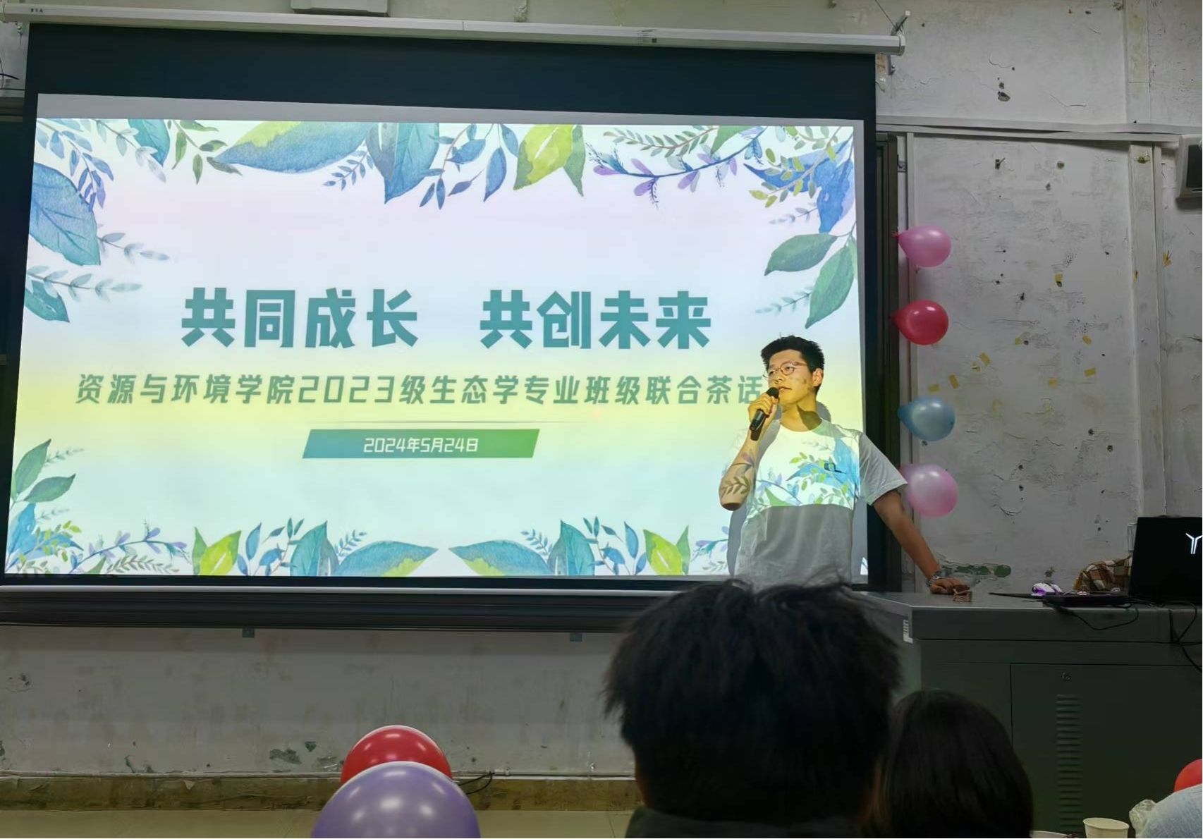 为进一步认识和了解班级同学,调动同学的积极性,活跃班级氛围,在锻炼个人能力和展示个人魅力的同时,以轻松、娱乐的心情进行交流讨论。生态学2023级本科班于2024年5月24日晚在第一教学楼1107教室开展“资源与环境学院2023级生态学专业班级联合茶话会活动”,班主任老师和俐、生态学2023级本科班助及全体同学参加了此次活动。