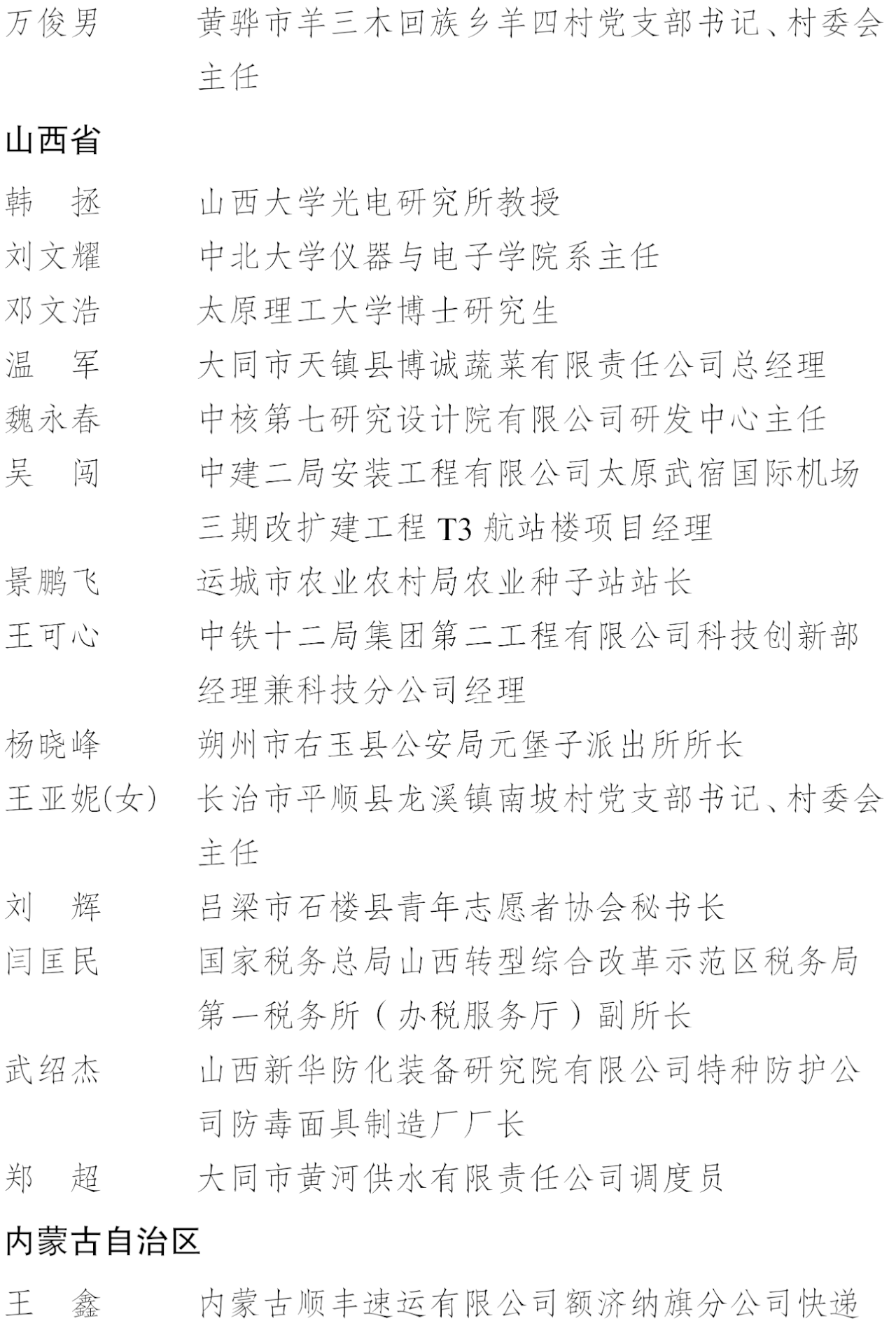 为表彰我国优秀青年在推进中国式现代化中的贡献,集中展示新时代青年的精神品格和价值追求,激励引导全国广大青年积极投身强国建设、民族复兴伟业,共青团中央、全国青联决定,授予王传英等30名同志2025年度中国青年五四奖章,授予新疆克州阿图什市哈拉峻乡谢依特小学戍边支教西部计划志愿者服务队等30个青年集体2025年度中国青年五四奖章集体,授予王崇鹏等677名同志2025年度新时代青年先锋。