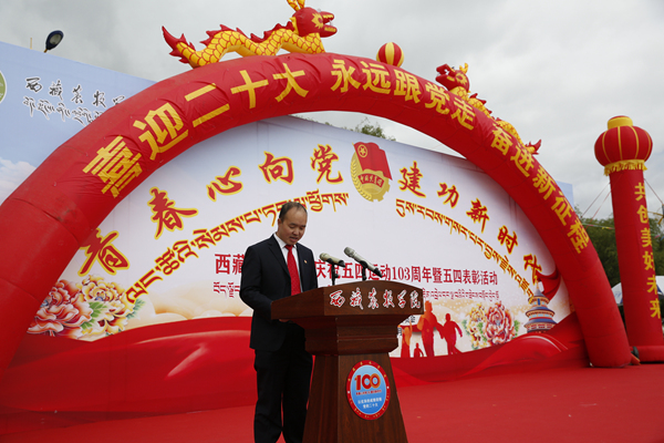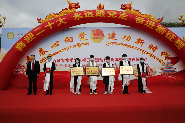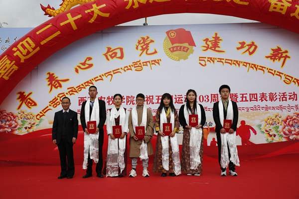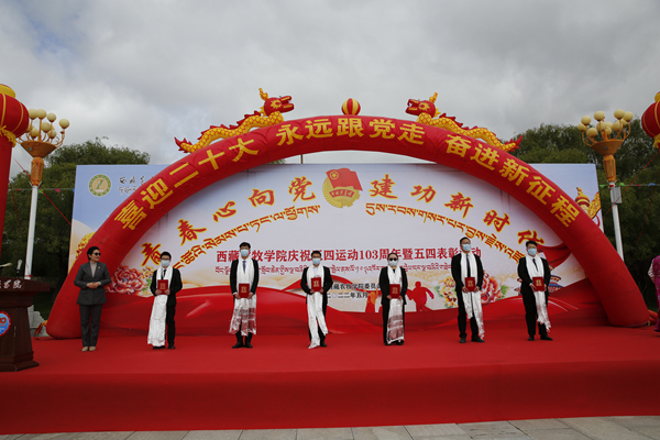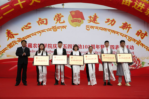 (云丹加措书记为“五四红旗团总支”“五四红旗团支部”颁奖)