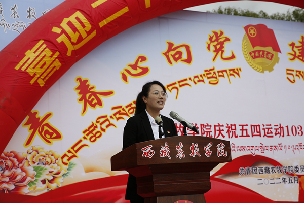 最后,强巴央宗副院长代表学院党委、行政作了热情洋溢的讲话,她首先向全院青年教职工和青年学生致以节日的问候,向获得表彰的先进集体和先进个人表示热烈的祝贺,简要回顾了“五四”运动的重大历史意义,并充分肯定了我院共青团工作在过去一年里取得的成绩,同时立足新形势、新任务,从广大青年要立大志,始终坚定崇高理想信念,牢记历史使命,不断增强青春定力;广大青年要明大德,始终爱党爱国爱藏爱校,维护团结统一,不断涵养青春正气;广大青年要成大才,始终勤于学习提升素质,勇于砥砺奋进,不断释放青春活力三个方面,对我院广大青年提出了明确要求和殷切的希望。