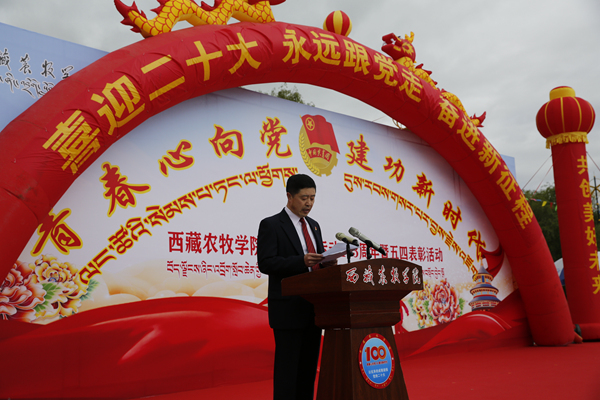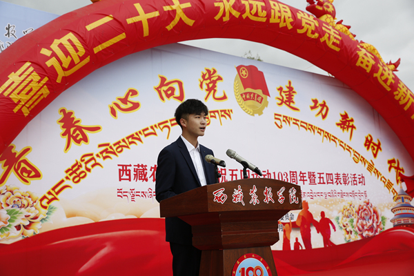2022年5月4日上午10:00,我院在文体馆前召开了“青春心向党 建功新时代”纪念“五四”运动103周年暨2022年“五四”表彰大会。院党委书记、副院长云丹加措,院党委副书记、院长娄源冰,院党委委员、副院长郭永刚,院党委委员、副院长强巴央宗及各县处级单位领导出席大会,会议由团委书记白玛卓嘎主持,获奖代表、青年师生代表近200人参加了大会。