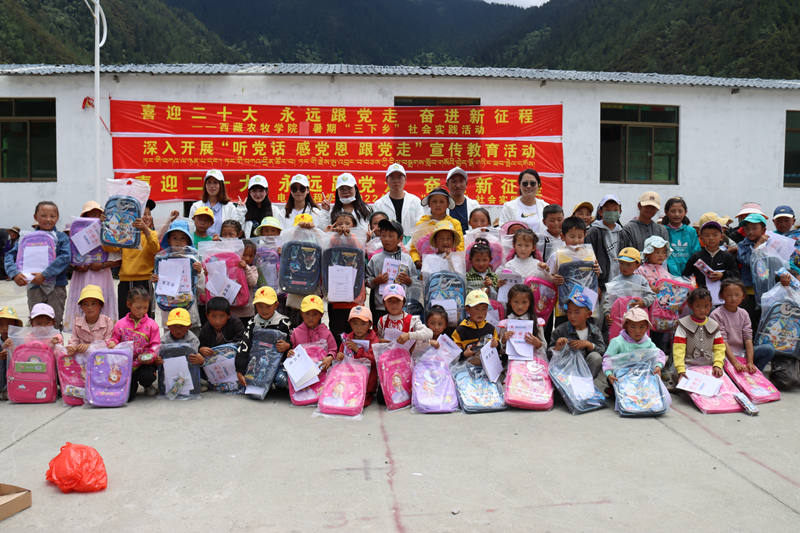 为深入学习宣传习近平新时代中国特色社会主义思想,贯彻落实习近平总书记关于青年工作的重要指示,引导和帮助广大青年学生在社会实践中“受教育、长才干、做贡献”,在观察实践中“听党话、感恩党、跟党走”,喜迎二十大的胜利召开,7月18日西藏农牧学院团委、西藏农牧学院电气工程学院共同在林芝市巴宜区百巴镇开朗村展开了“喜迎二十大 永远跟党走 奋进新征程”暑期“三下乡”社会实践活动。