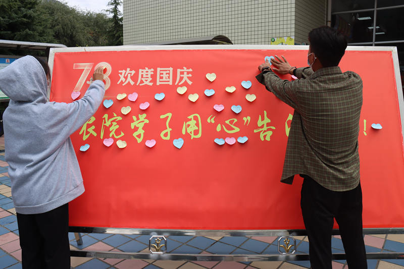 在告白墙上,资源与环境学院 2021级旅游管理本科班冯毛宁写到:亲爱的祖国母亲,生日快乐!每至此时,最耀眼的仍是那中国红——街头巷尾、道路两侧迎风招展的五星红旗。回首往昔,我们党经历了101年的风雨历程,跨越了数不尽的雄关漫道,依旧在奋进的新征程上生机勃发,依旧在民族的复兴路上斗志昂扬。您的1949,我们的2022,愿以寸心寄华夏且将岁月赠山河!电气工程学院2021级农业电气化本科1班熊芳写到:正值秋风飒爽、硕果累累的十月,我们迎来了祖国母亲73周岁生日。锦绣中华,盛世华章,国之大庆,与有荣焉……是初心与使命召唤的1949,是梦想与希望播撒的2022。今朝生于华夏,与国同庆,倍感荣幸。作为新时代的新青年,欣逢盛世定当不负盛世,要毅然接过时代的接力棒,向着红旗指引的方向,以实干笃定前行,以奋斗谱写青春篇章,以梦想开启未来征程。水利土木工程学院2020级水利水电工程本科2班赵兴明写到:在这金秋十月,在这硕果累累中,我们迎来了祖国母亲73周年华诞。时光如水,忆往昔峥嵘岁月,在过去的几十年间,我们取得了一项又一项伟大成就:载人航天,自造航母,百年梦想终成真,西气东输,南水北调,精准扶贫,民生福祉暖民心……岁月如歌,看今朝新时代青年再谱新篇。