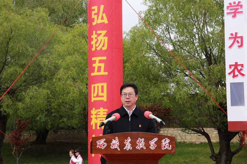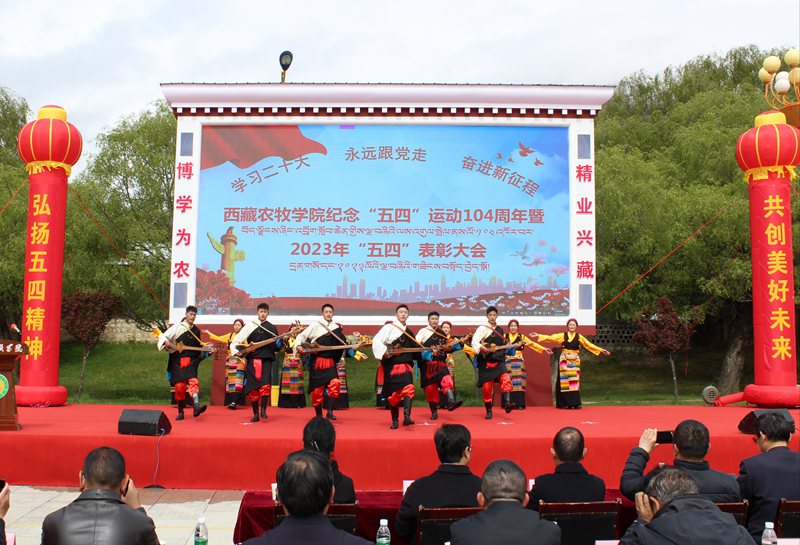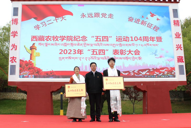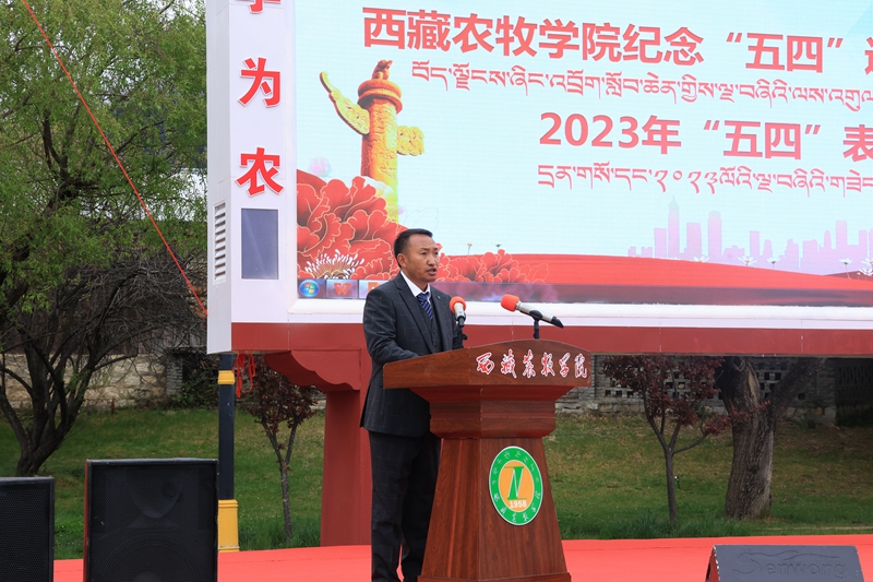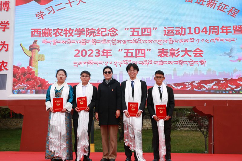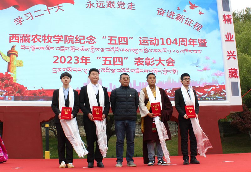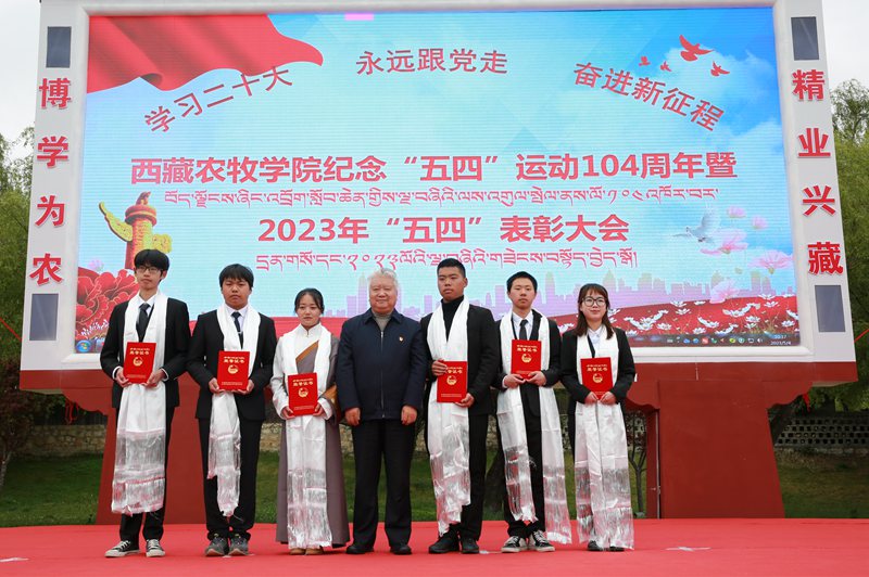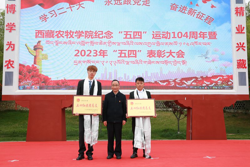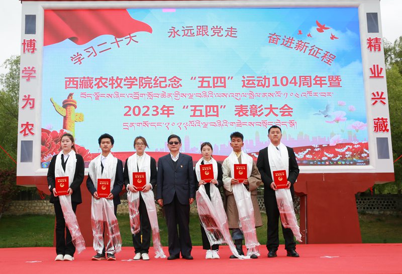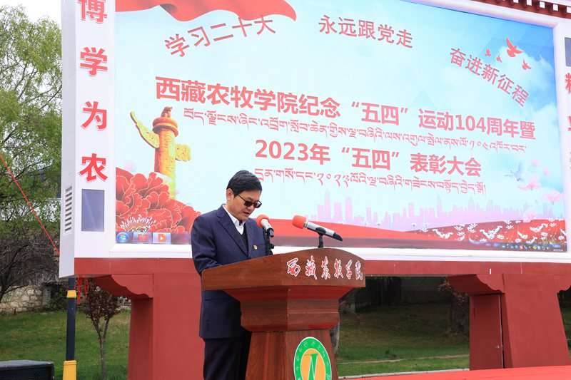 2023年5月4日上午10:30,西藏农牧学院在文体馆前组织召开了“学习二十大 永远跟党走 奋进新征程”纪念“五四”运动104周年暨2023年“五四”表彰大会。院党委副书记、院长娄源冰,院党委副书记王程,副院长郑维列,院党委委员、副院长巩同梁,院党委委员、纪委书记边巴次仁,院党委委员、副院长强巴央宗及各县处级单位领导出席大会,会议由团委副书记普旺堆主持,获奖代表、青年师生代表260余人参加了大会。