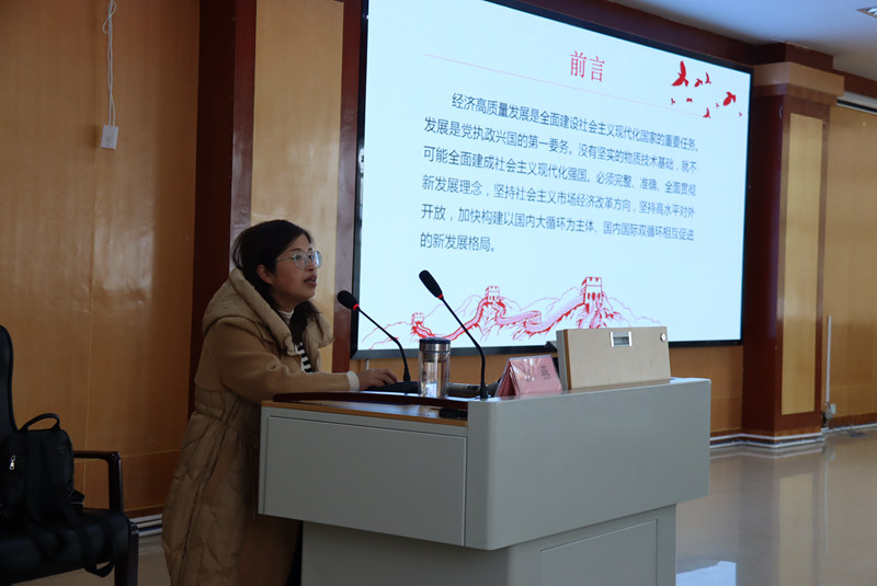 会上,曾燕以“领悟会议精神,谱写崭新篇章”为主题,讲到:发展是党执政兴国的第一要务,经济高质量发展是全面建设社会主义现代化国家的重要任务,没有坚实的物质技术基础,就不可能全面建成社会主义现代化强国。必须完整、准确、全面贯彻新发展理念,坚持社会主义市场经济改革方向,坚持高水平对外开放,加快构建以国内大循环为主体、国内国际双循环相互促进的新发展格局。