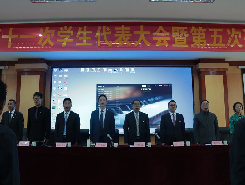 上午10:00,大会在庄严的国歌声中拉开序幕。工作人员宣读了来自兄弟院校代表西藏大学、浙江大学学生组织贺信,贺信高度赞扬我校学生组织在机构改革、促进教育教学、服务学生成长成才、丰富校园文化生活等领域内工作的新思路、新方法,并对大会的胜利召开表示热烈祝贺。随后,学生工作处处长赵德军致辞,肯定了我校青年学生工作取得的一系列成绩,祝愿青年学生在与祖国同行、为人民奉献的不懈奋斗中健康成长,祝愿学生组织在改革发展进程中再上新台阶、实现新发展。