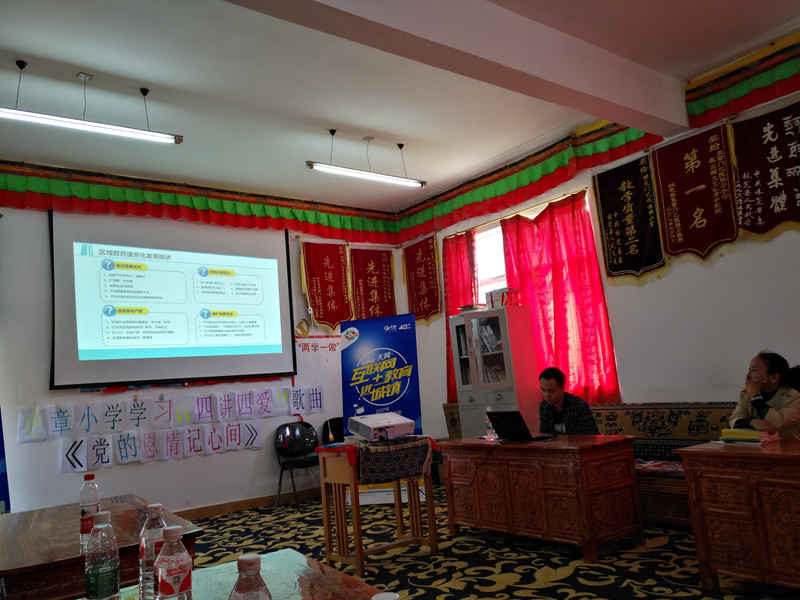 上午10点半,实践活动在更章门巴民族乡小学会议室正式开始,活动由院团委副书记苏栋主持。首先,黎普明同志简要介绍了本次实践活动的背景、目的、意义、主要内容等。接着,更章门巴民族乡小学老师王邵明介绍了该小学在互联网应用方面的基本情况。最后,中国电信林芝分公司政企客户部客户经理彭毅然做了题为“中国电信区域教育云方案”的专题讲座,从教育云方案概述、核心目标、重点任务、云方案应用实例等方面做了详细的介绍,让在座的师生对未来教育的模式、效果及互联网在教育中的积极作用等有了新的认识。
