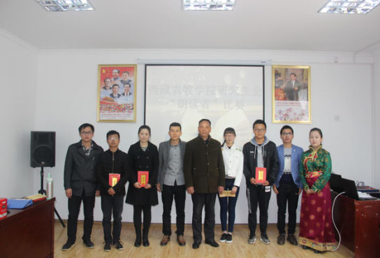 为深入开展“一学一做”活动,推进共青团活力提升,我院研究生会以“创建文明城市 打造书香校园”为主题,于世界读书日4月23日上午在第2办公楼三楼会议室举行了“朗读者”活动的比赛。此次活动由西藏农牧学院研究生会发起,院团委、研究生处予以指导,研究生处副处长李新堂老师、第一届研究生会副主席杨红、现任研究生会副主席王太航等人担任评委,参与学生30余人。