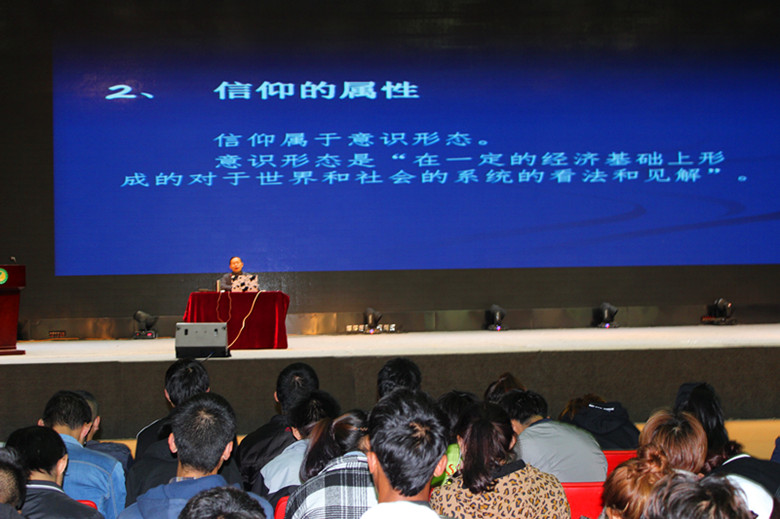 报告会于19:30正式开始,王国新老师以《共产党员的信仰与当代》为题精心报告,他通过信仰的旨趣,共产党人的精神家园,当代共产党人的信仰危机,共产党人的当代信仰,共产党人的信仰与宗教五个部分深刻阐述了在当代应如何树立共产主义信仰,并希望广大青年学子深入学习贯彻习近平总书记系列讲话精神,坚定理想信念,练就过硬本领,勇于创新创造,矢志艰苦奋斗,锤炼高尚品格,做合格接班人。整个讲座内容系统全面,深入浅出,既有深刻的理性感悟,又有很强的现实针对性和指导意义,使参会的师生深受教益和启发。