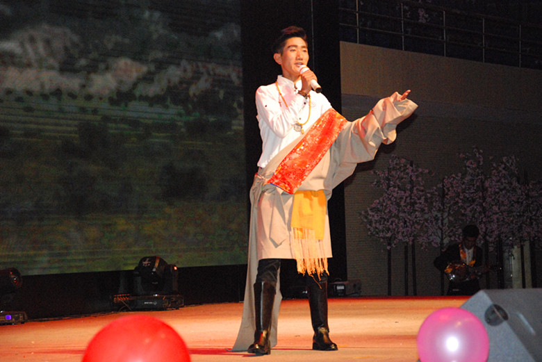 晚上7点30分,比赛在活力激扬的选手走秀中拉开了帷幕。比赛过程中,来自各个二级学院的13名选手们凭借风格各异的曲目、饱含深情的歌唱、游刃有余的唱功,展示出了大学生朝气蓬勃的精神面貌和精湛的艺术功力。1号选手的《映山红》饱含深情,歌曲中自然流露出对老一辈革命家的追思与怀念;7号选手的《趁早》,浑厚的声音和钢琴伴奏深深打动着现场观众;10号选手一首《天路》,高亢有力的演唱征服了在场每一位听众;上一届一等奖获得者土登旺久的友情演出,勾起了大家美好的回忆。绚烂多彩的屏幕图景、精心制作的VCR微视频、运用微信公众平台投票产生最佳人气奖成为本届大赛的亮点,整场比赛紧凑有序、精彩亮丽,赢得了现场师生阵阵热烈掌声。