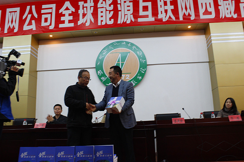 宣讲活动开始前,国网西藏电力有限公司总经济师蔡德峰向我院赠送了中文版《全球能源互联网》书籍,图书馆副馆长张宏伟代表学院接受了捐赠。