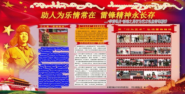 为回顾不朽历史,弘扬乐于付出、不求回报的雷锋精神,同时增强同学们助人为乐、不计得失的奉献意识,在院团委的精心安排下,由院学生社团联合会主办,院艺术团、话剧团、跆拳道健身协会、乒乓球协会协办的以“行为艺术”弘扬雷锋精神活动于2015年3月22日11时在二食堂门口举行,院团委相关干部、团学干部以及青年学生400余人参加此次了本次活动。