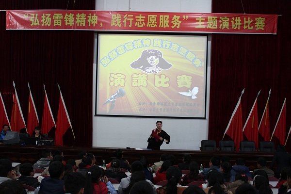 为传承与弘扬雷锋精神,增强广大学生的志愿服务意识,促进学生之间的学习与交流,在院团委的精心指导下,院学生社团联合会于2015年3月29日在2107教室组织开展了以“弘扬雷锋精神,践行志愿服务”为主题的演讲比赛,12名团学干部参加此次比赛。院团委干事王喆老师、张淼老师及团学干部、青年学生200余人出席此次活动。