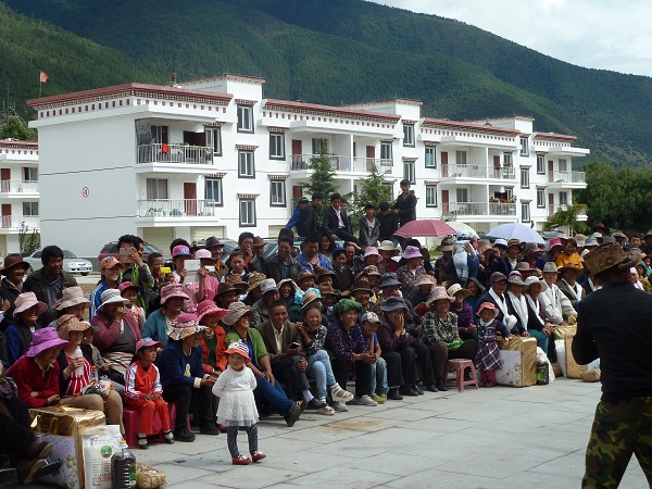 上午9:30分,活动在米林农场办公楼前面广场拉开了帷幕。活动开始,学生工作处副处长、团委书记达瓦同志作了致辞,阐述了开展暑期“三下乡”社会实践活动的意义。接着,达瓦同志为农场的9户贫困职工献上了洁白的哈达,并分别为他们发放了棉被、食用油、糌粑、砖茶和慰问金,合计价值6500余元。