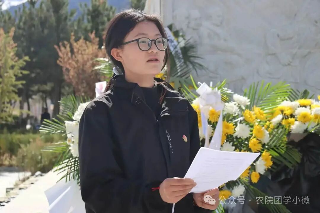 秦丽同志表示,此次祭扫活动,是一堂生动践行“为党育人、为国育才”使命的思政实践课。她勉励同学们,作为农大学子,要主动学习英雄事迹、感悟边境线上的家国情怀,在日常学习与生活中不断锤炼品格、增长才干,把英雄精神转化为奋进动力,以实际行动担当时代责任。