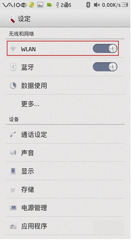 2. 进入到设置界面后,一般第一个选项就是wlan选项,点击“wlan”。进入wifi无线网设置界