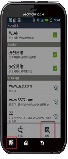 4. 进入后,点击手机左下角的"菜单键",在弹出的小菜单里选择“高级”