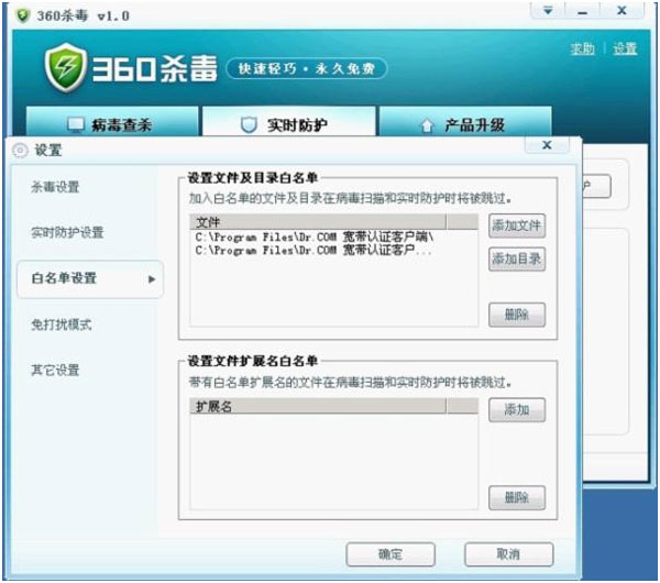 把客户端安装目录下的ishare_user.exe和drcomdll.dll文件设置为受信任的程序。设置方法:点击360杀毒软件的设置,在白名单里面加入如下图所示目录和文件即可: