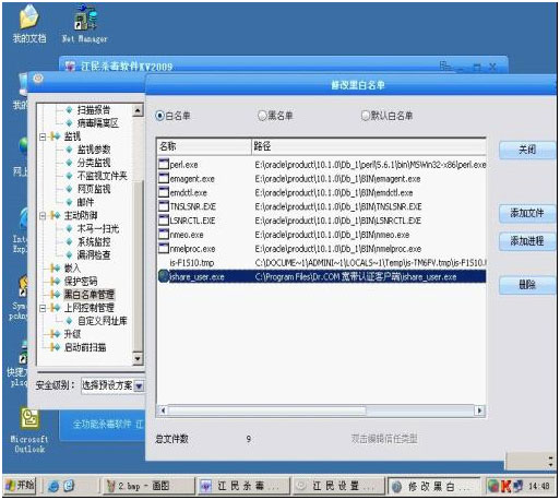 d)在下面列表中的对象中输入 “X:\Program Files\Dr.COM 宽带认证客户端\drcomdll.dll; X:\Program Files\Dr.COM 宽带认证客户端\ishare_user.exe;其中X为系统盘;”;