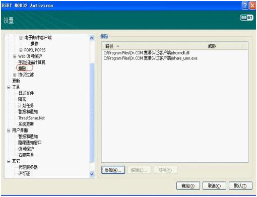 Nod32更新最新的病毒库后,会认为Drcom的客户端程序ishare_user.exe为木马病毒程序,为Nod32误报,在安装Drcom客户端时,需要先把Nod32停用,然后再安装客户端。客户端安装完成后,再启用Nod32,就可以解决该问题。