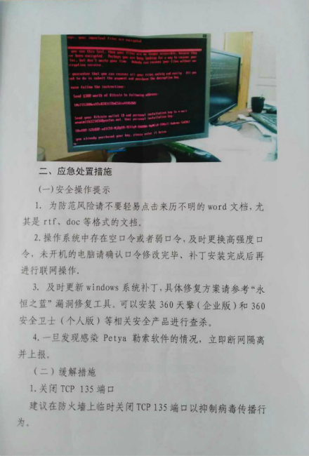 关于重点防范Petya勒索病毒攻击的紧急通报