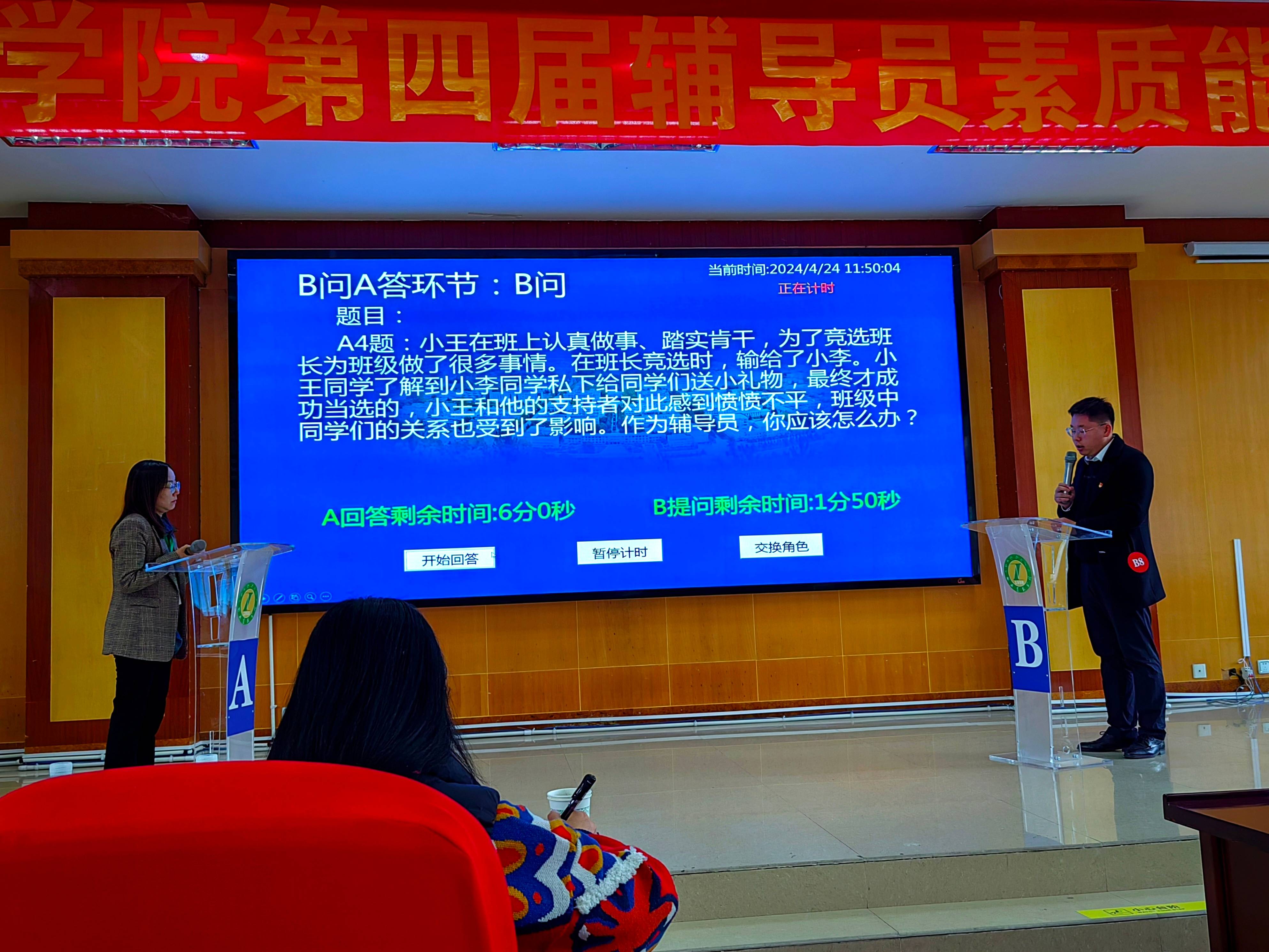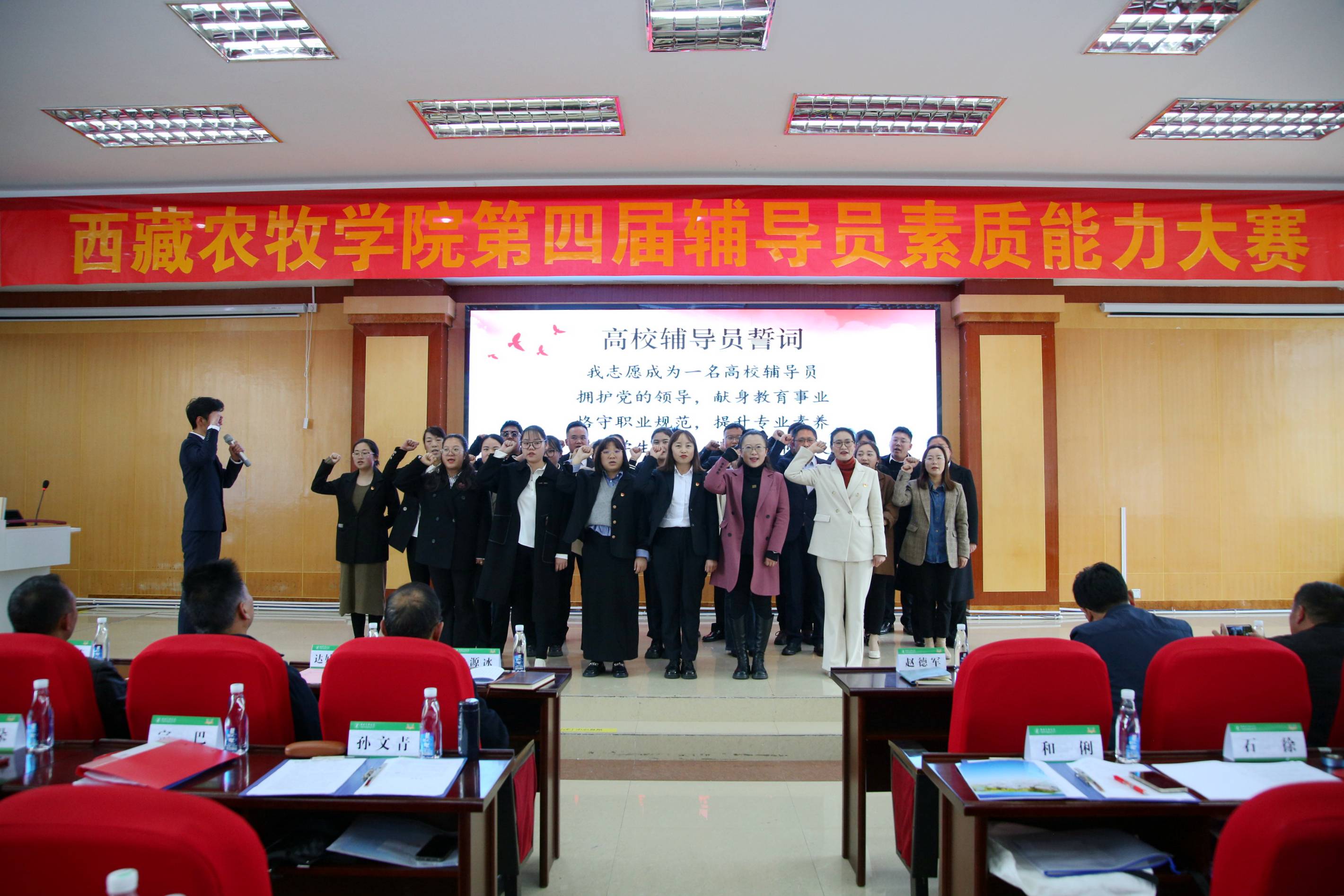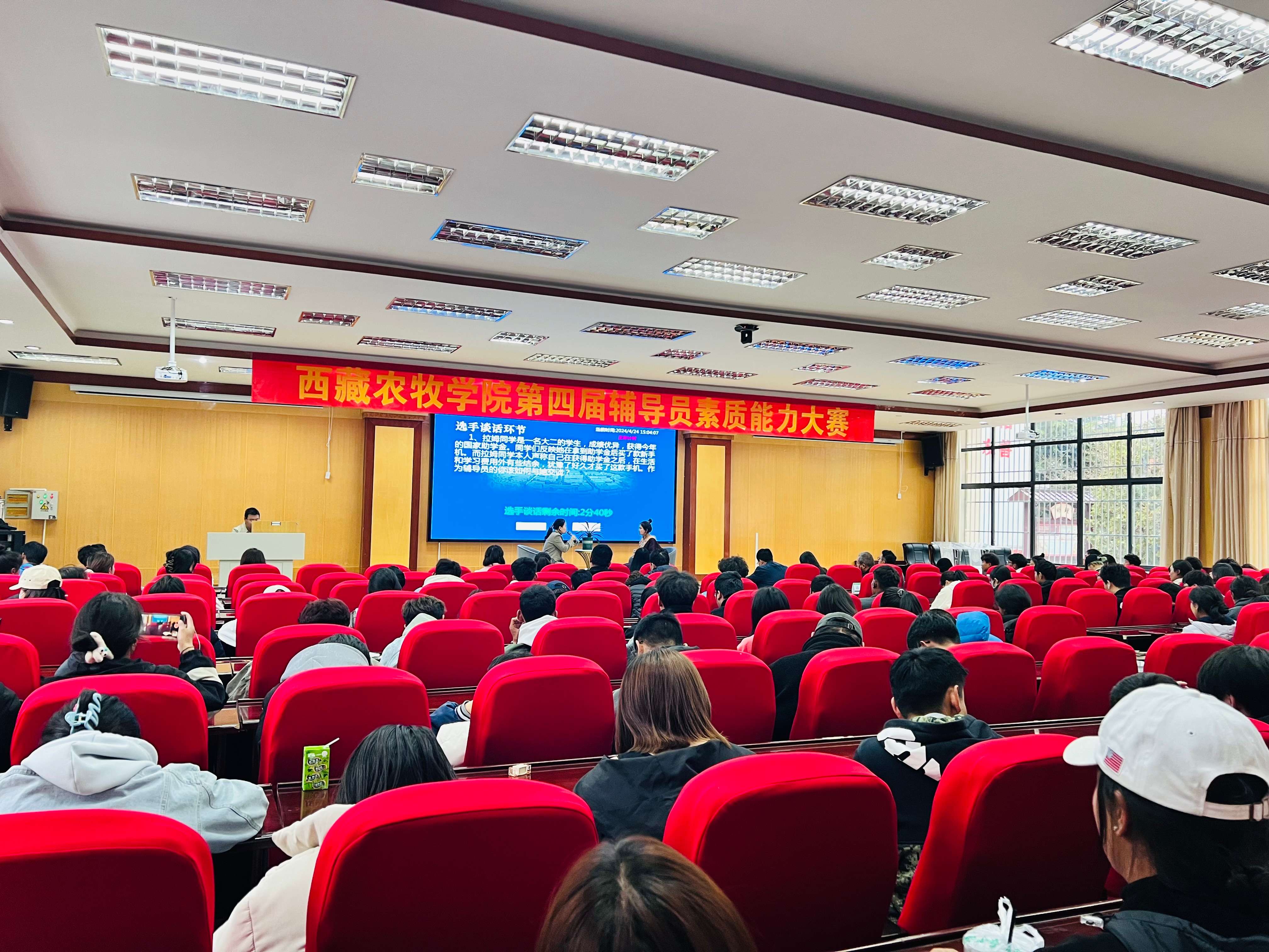 为进一步加强我校辅导员队伍专业化、职业化建设,学生工作处主办了第四届西藏农牧学院辅导员素质能力大赛。党委宣传部部长达娃次仁、研究生处处长王军、教育工会副主席贾海娥、植物科学学院教授唐晓琴等13名专家担任评审。大赛由学生工作处处长赵德军主持。 2024年4月23日,第四届西藏农牧学院辅导员素质能力大赛在研究生苑会议室开幕。开幕式上,植物科学学院辅导员王兵带领全体参赛辅导员宣读辅导员誓词;西藏农牧学院党委书记、副院长娄源冰出席大赛,并致开幕词。娄源冰寄语广大辅导员积极备赛,沉着应战,充分展示风采,赛出水平,赛出风格,赛出农院精神。预祝所有参赛辅导员取得优异成绩!并宣布大赛开始。 本次辅导员素质能力大赛分为主题班会、理论考试、理论宣讲、案例研讨、谈心谈话五个环节,突出以赛带练、以赛代训,强化以赛促学、以赛促建,环环相扣持续推进辅导员素质能力提升。27位辅导员以较高理论素养、扎实基本功底、敏捷应变能力,充分展示了我们学校辅导员队伍的职业风采。 经过理论考试、主题班会环节的比拼,最终王倩倩、章国豪等16名辅导员晋级案例研讨环节。 案例研讨环节以“我提问,你回答”的方式开展,主要考察辅导员综合运用理论分析问题、研判问题、解决问题的能力。在一问、一答”的过程中,选手们针对案例,展现扎实的理论功底和丰富的知识储备,以及良好的现场应变和逻辑思辨能力,最终12位选手进入谈心谈话环节。 在谈心谈话环节,主要考察辅导员对学生特征、学生成长成才规律的了解把握程度,对学生的教育引导、帮助学生解决困惑等方面的能力。在沟通过程中,参赛选手结合工作实际,准确把握谈话核心,积极开展教育引导,充分展现了我校辅导员作为青年大学生知心人、热心人、引路人的专业素养和育人温度。 在辅导员素质能力大赛中,我们还开展了学生工作展板评选环节,由13名专家评委就展板内容、富有创意性、是否可推广三大评分标准对22块学生工作成果展板进行打分。 经过为期两天激烈的角逐,王倩倩、章国豪荣获一等奖,殷巧、龚萍、孙凤荣获二等奖,王兵、石徐、郭洋、索朗曲珍获三等奖,动物科学学院获优秀组织奖。王倩倩获基础测试、案例研讨单项最佳奖,王兵获主题班会、理论宣讲单项最佳奖,孙凤荣获谈心谈话最佳奖。 2024年4月25日下午,第四届西藏农牧学院辅导员素质能力大赛举行闭幕式。杨建军副处长宣布比赛成绩,评委、领导为获奖个人及集体颁奖。 西藏农牧学院党委副书记王程致闭幕词,寄语辅导员以此次辅导员大赛为平台,以高校思想政治工作会议精神为引领,齐心协力、共同努力,推动我校学生工作队伍迈上新台阶、开创新局面,同时向受表彰的先进集体、先进个人表示热烈祝贺。 辅导员素质能力大赛是我校加强辅导员队伍建设的重要举措,是辅导员展示才能、交流学习的重要平台。比赛有效提升了辅导员理论水平、专业素养和职业能力,增强育人本领,提高育人实效,全面落实立德树人根本任务。