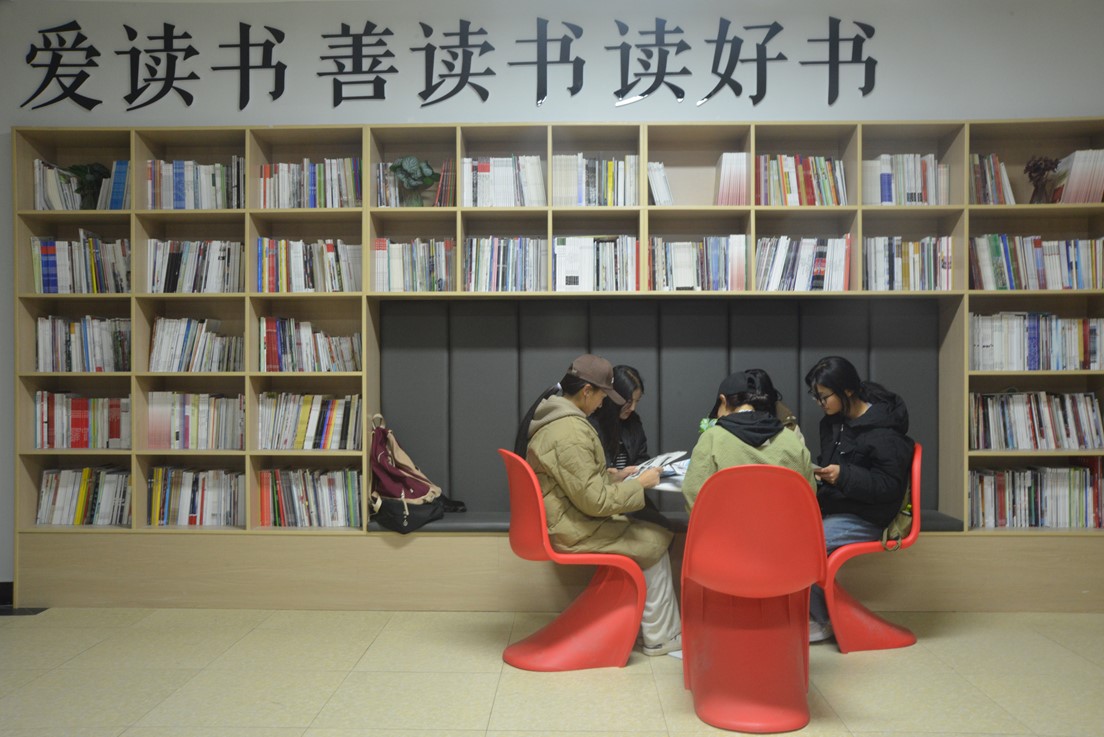 本次读书交流会充分利用宿舍区图书角,分别是新建立的16-17栋、20-21栋宿舍文化阵地,该文化阵地自启用以来,便有不少同学前来借阅品读书籍。新增图书由我校图书馆、毕业校友和在校师生共同捐赠,宿管科对该批书籍做了进一步分类整理,此外,学校还为图书角配备了舒适的桌椅,为学生成长构建理想的文化生态环境。