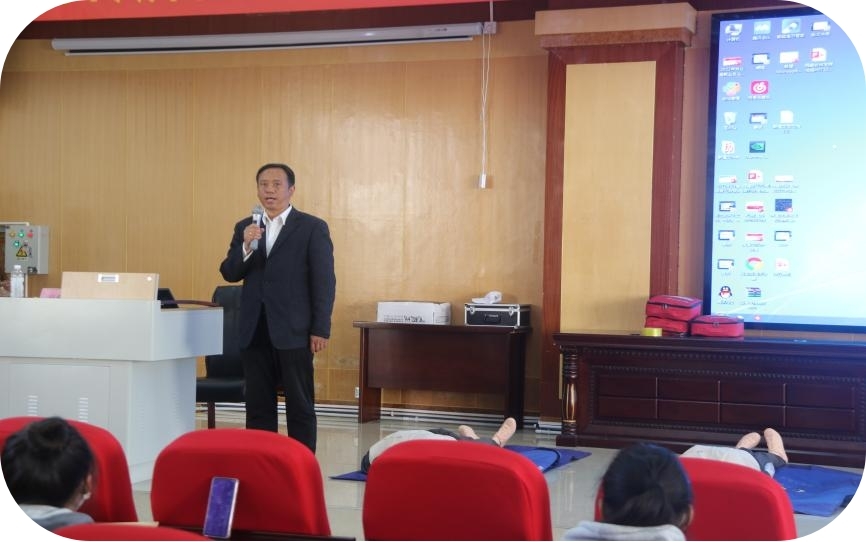 培训开始,学生工作处处长赵德军到现场督导工作,并对作为牵头单位的藏医药大学表示了感谢,对自治区红十字会授课老师表示了热烈欢迎。他表示:本次培训邀请了西藏自治区红十字会以巴桑老师为首的5位老师进行授课,各位老师是西藏自治区红十字会玖玖玖紧急救援成员。曾在北京中国红十字会、美国心脏协会授课。截至目前已经在拉萨市内培训了5万多人,不但具有多次外出紧急任务执行经历同时具有丰富的急救实战经验。此次急救培训机会来之不易,参训师生务必认真学习应急救护知识和技能。