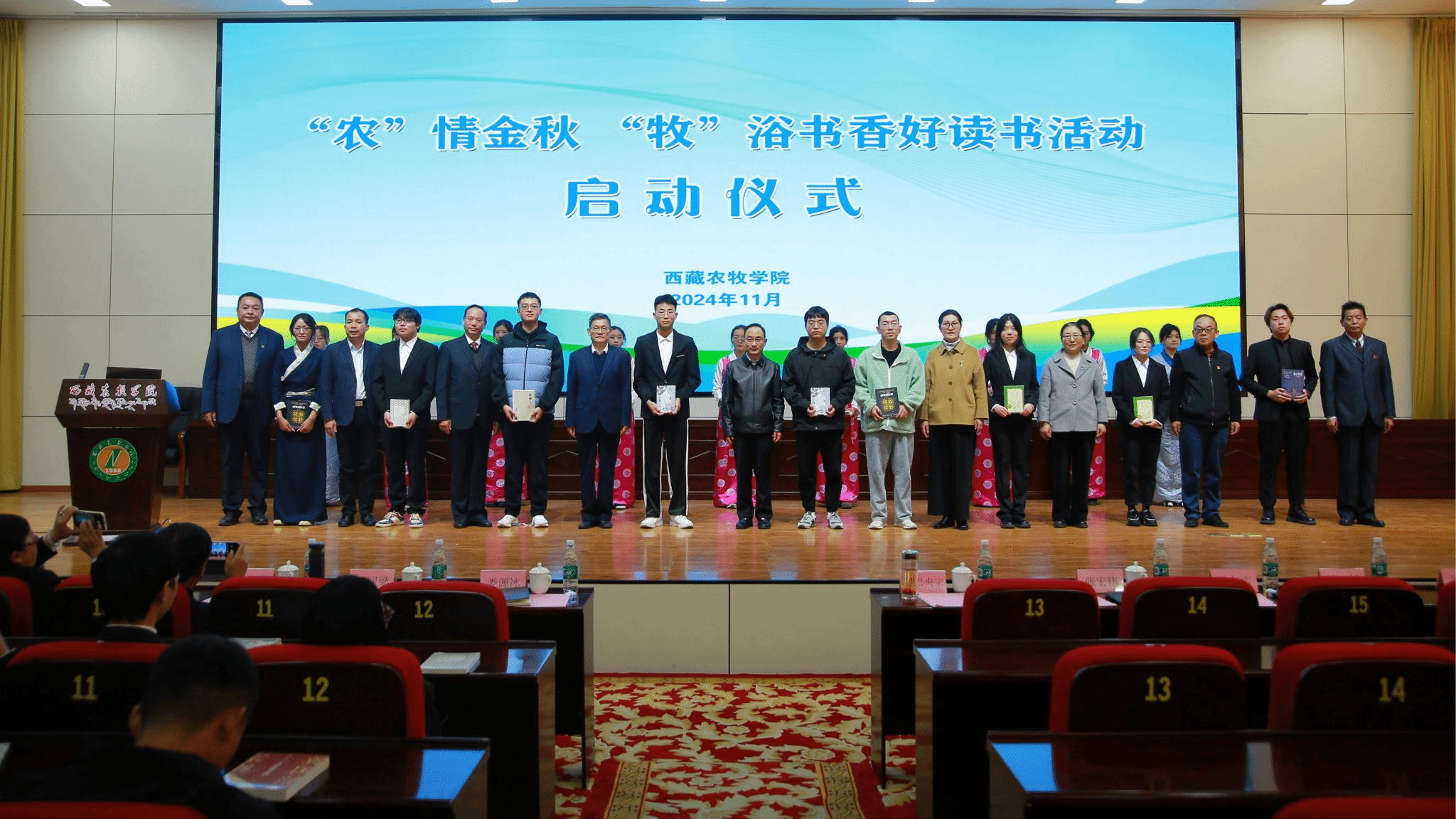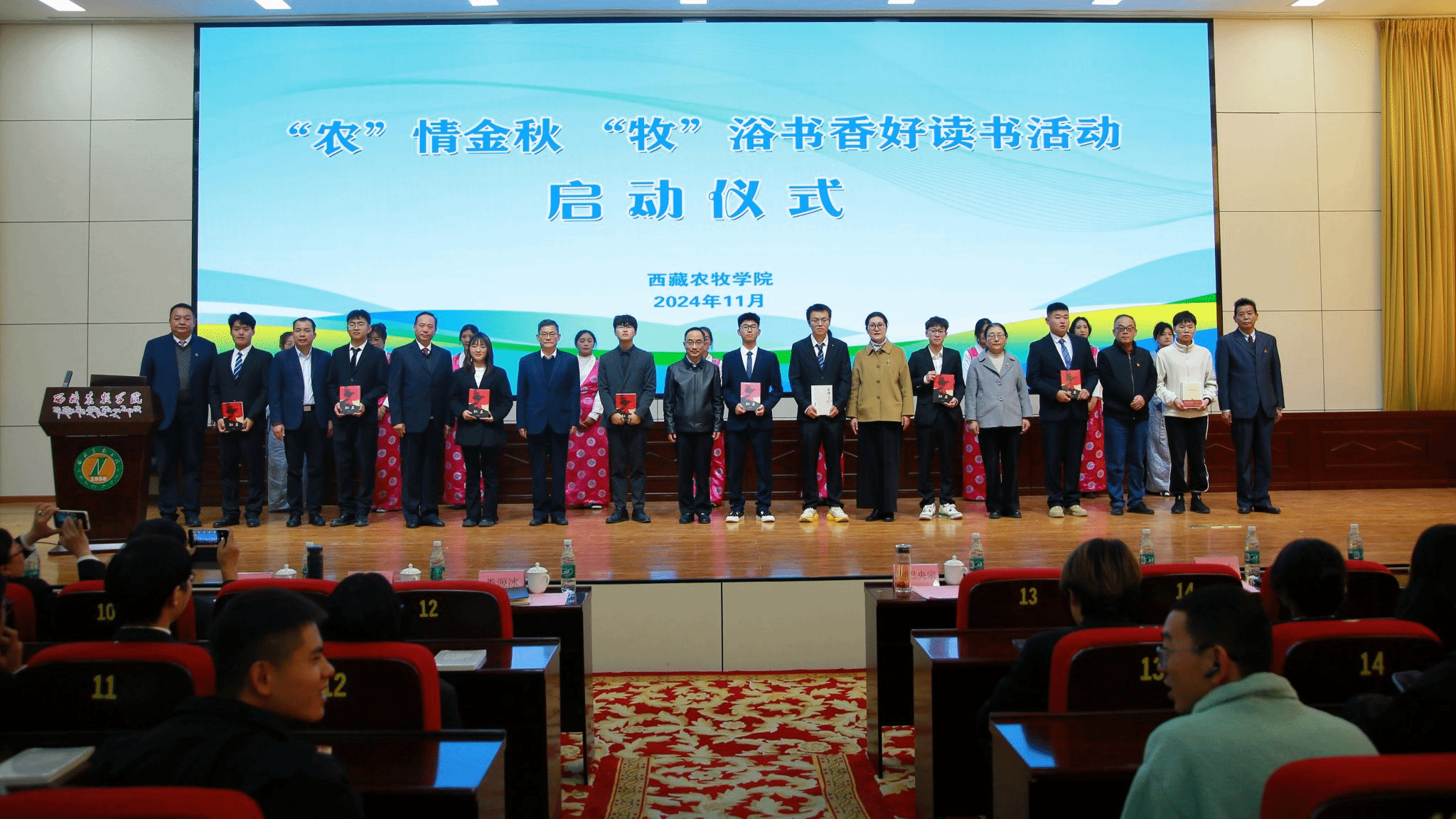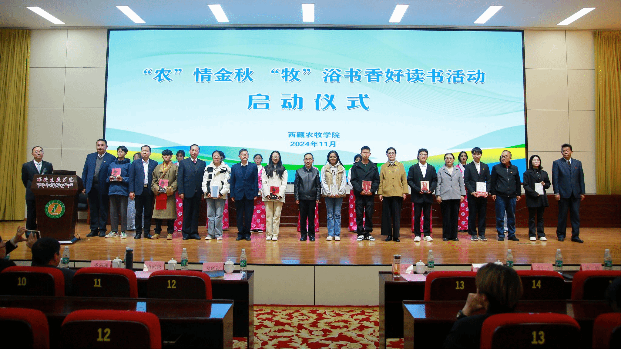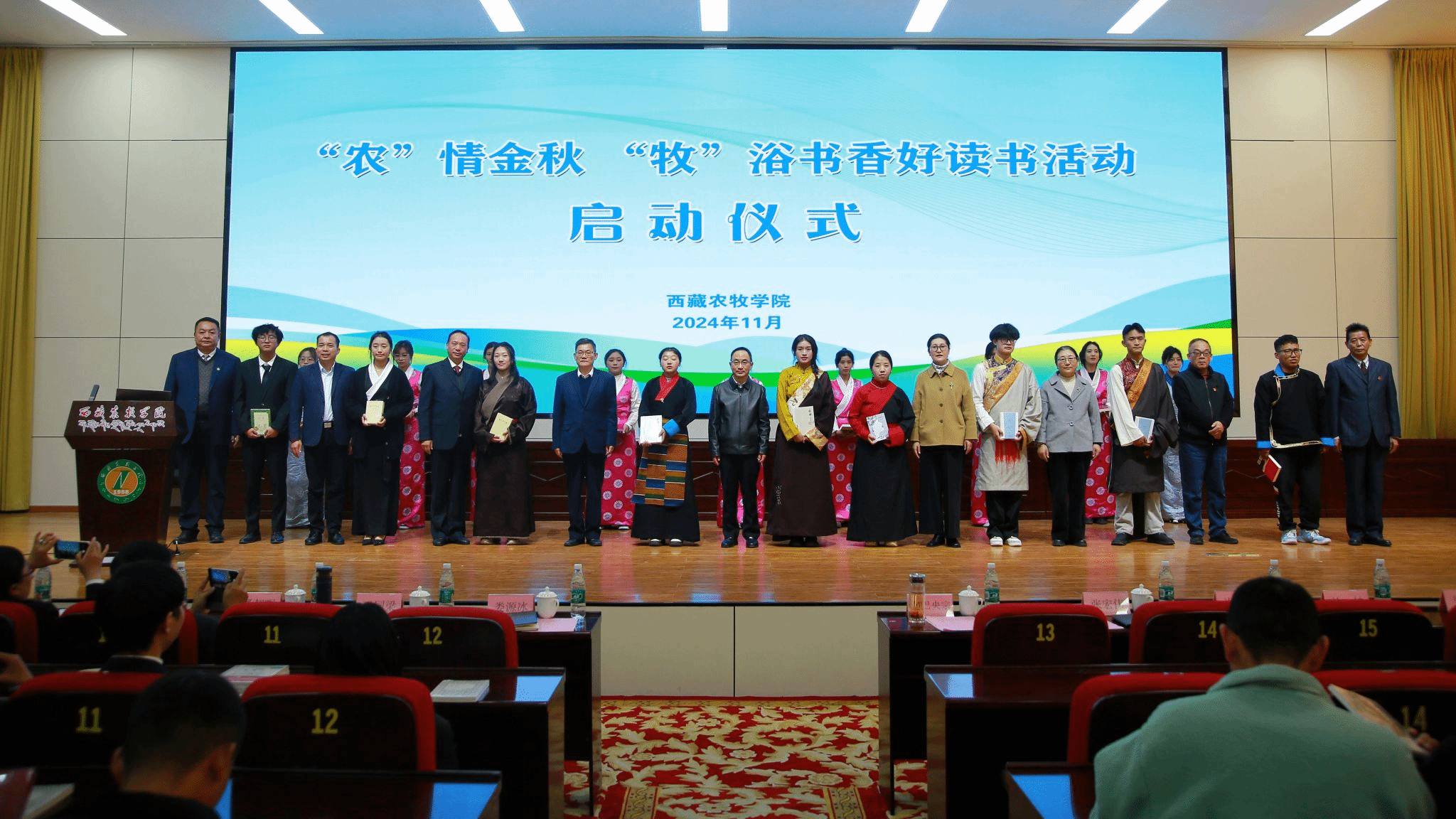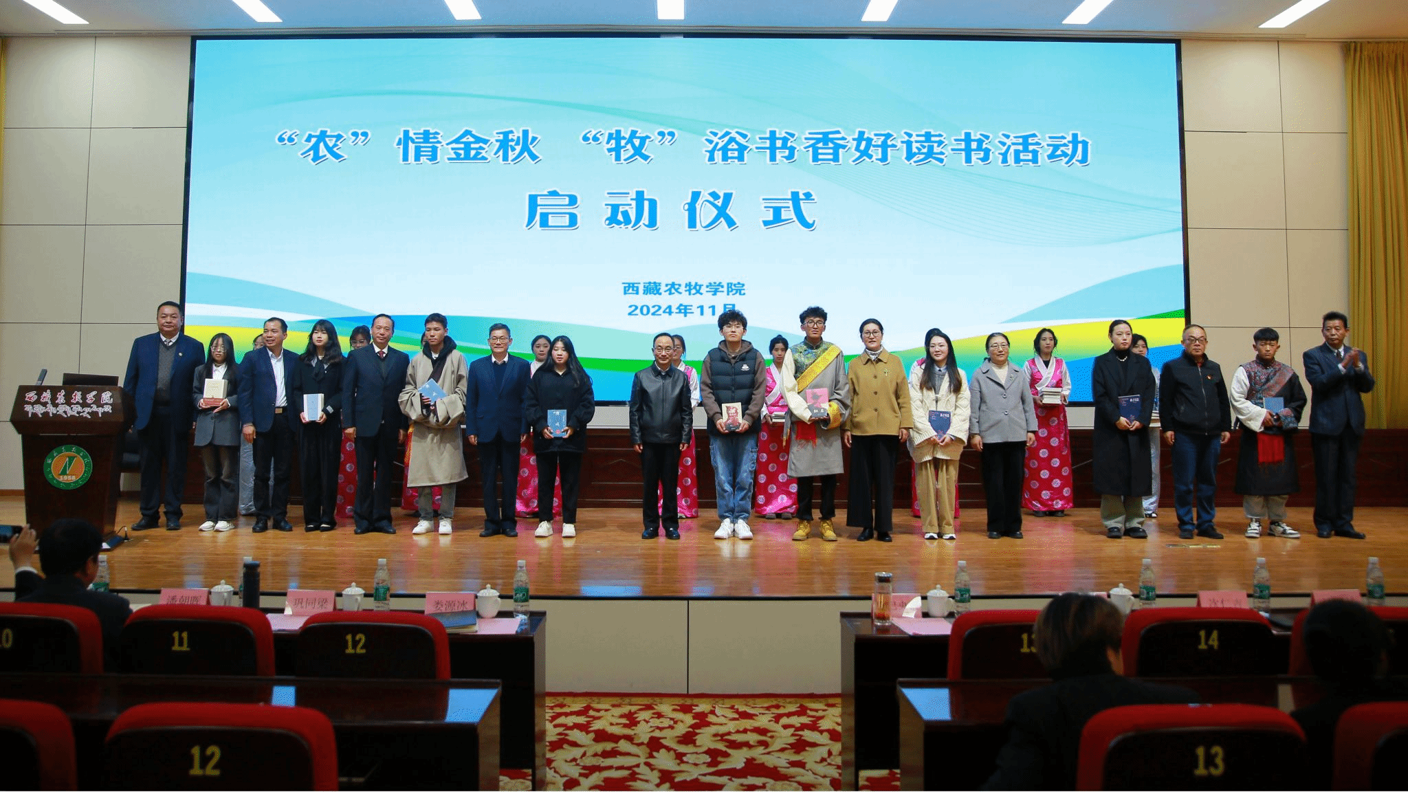 2024年11月5日下午,我校在一号行政楼学术报告厅举行 “农”情金秋、“牧”浴书香好读书活动启动仪式。校党委书记、副校长娄源冰,党委副书记、校长强巴央宗,党委委员、副校长巩同梁,校图书馆馆长张宏伟,学生工作处及各二级学院学生工作分管领导,辅导员、学生代表共300余人出席了启动仪式。仪式由学生工作处处长赵德军主持。