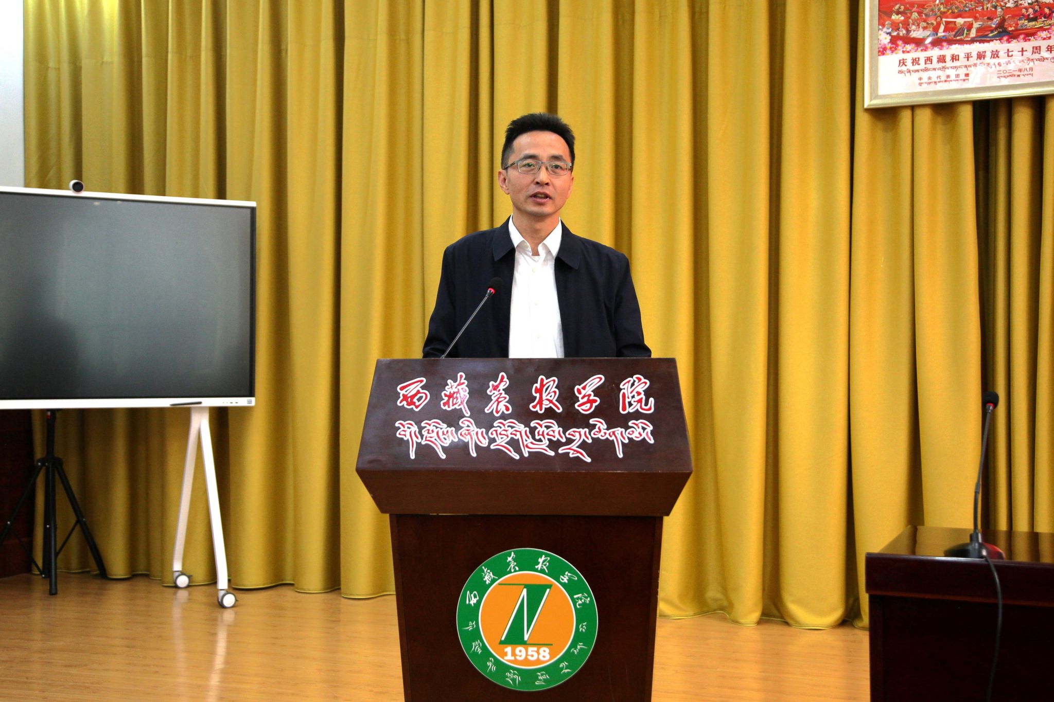 苏大鹏副书记作总结讲话。他向所有获奖的同学表示祝贺,希望受表彰的学生以“一览众山小”的豪情攀登知识高峰,以“饮水思源”的初心回馈社会,并向同学们提出三点希望与要求:一是珍惜荣誉,戒骄戒躁。希望同学们珍惜荣誉,谦逊进取,保持良好的学习状态,以“山外青山楼外楼”的清醒看待成绩,积极向上,不断努力,立志成才;二是勤奋学习,全面发展。希望同学们厚积薄发,用终身学习锻造自身核心竞争力,坚定前行目标,勇于踏浪前行,掌握生存的真本领,为将来发展打下坚实的基础,在全面建设社会主义现代化新西藏进程中贡献自己的力量;三是感恩回馈,传递温暖。“落其实者思其树,饮其流者怀其源”,希望同学们以学校为荣,时刻牢记同伴、学校和西藏自治区给予你们的支持与关怀,将个人理想追求、奋斗目标融入党和国家事业之中,以实际行动反哺社会,成为有家国情怀的栋梁之才。