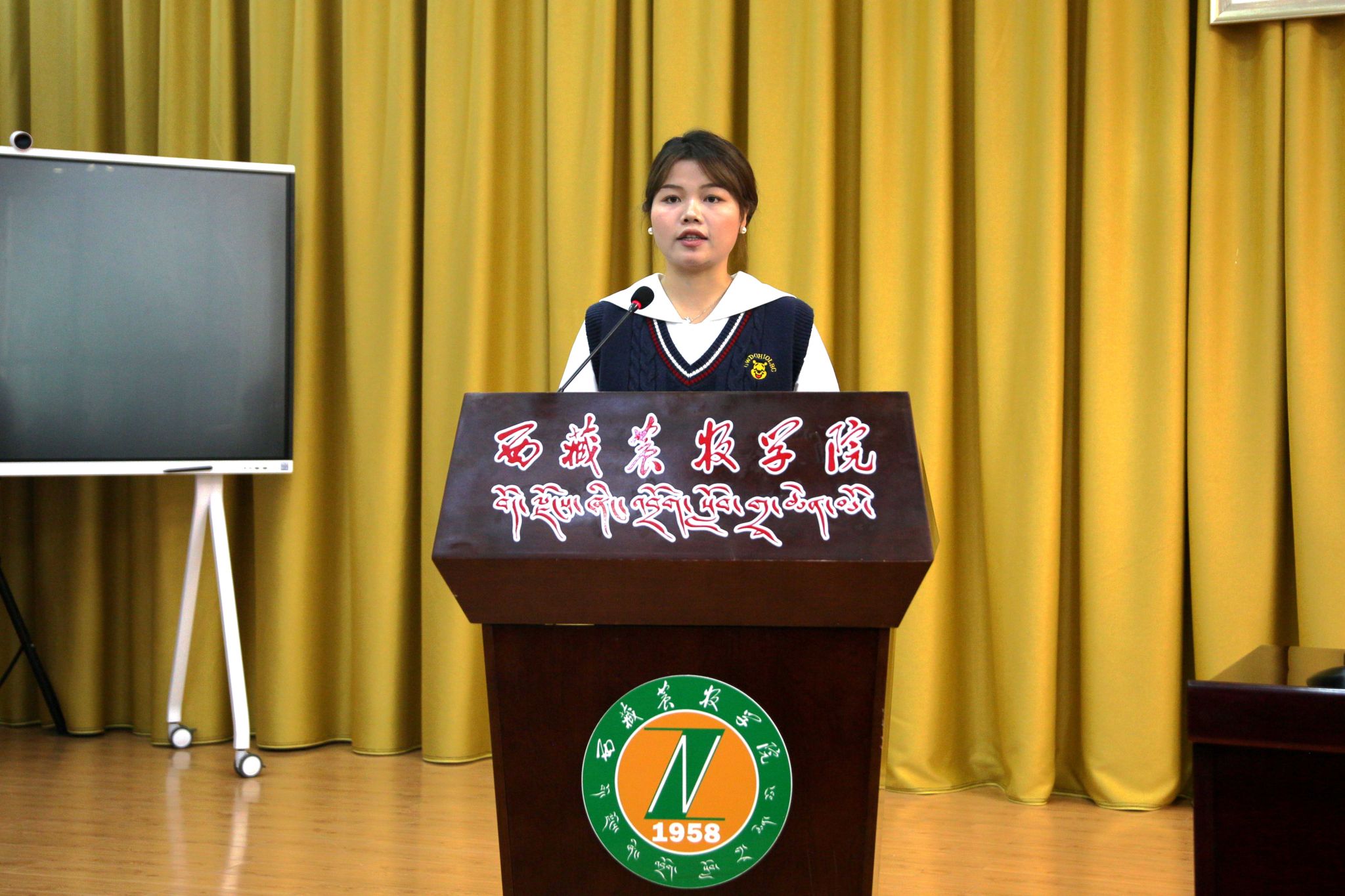 高原生态研究所林学专业李杰婷、植物科学学院植物保护专业巴桑玉珍作为获奖学生代表上台发言,感谢学校以及老师的辛勤付出和培养,并表示在接下来的学习中不骄不躁,刻苦学习,再接再厉,一步一个脚印走好自己的成长的每一步。