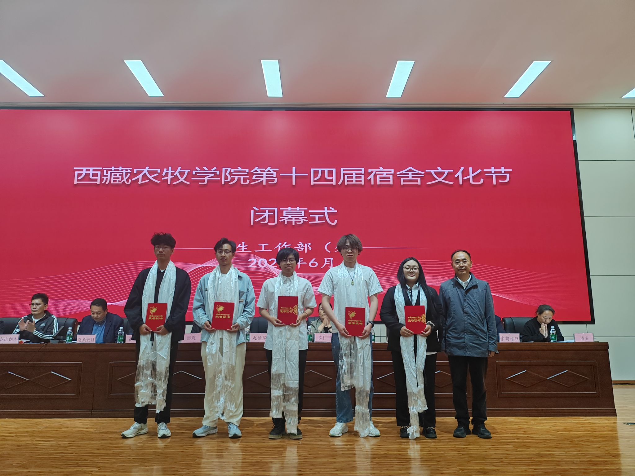 会始,学工部(处)副部(处)长洛桑云旦宣读了《关于表彰第十四届宿舍文化节先进集体和个人的决定》,党委委员、副校长刑震以及学工部(处)、各二级学院领导为获奖集体和个人颁发了荣誉证书。