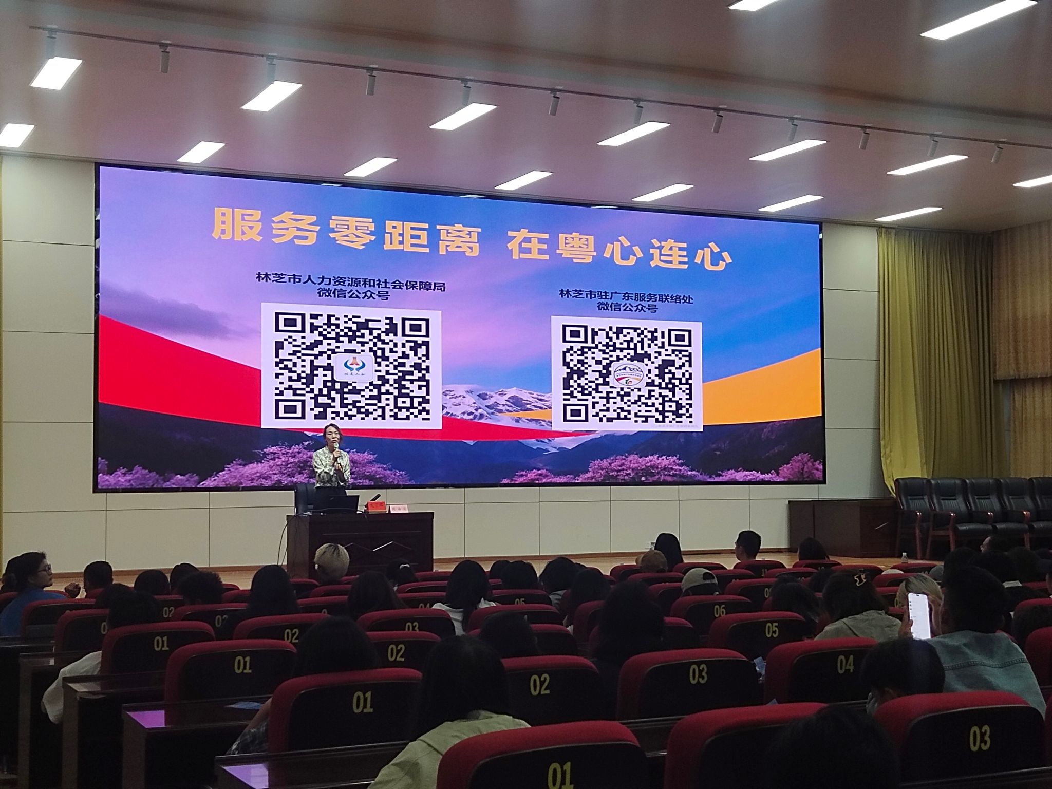 为深入贯彻落实习近平总书记关于治边稳藏重要论述以及对口支援工作重要指示精神,进一步深化对口援藏工作,推动更多西藏籍高校毕业生实现区外高质量充分就业,促进各民族交往交流交融,6月22日下午,林芝市2025年“雪域高原粤藏情” 就业援藏巡回宣讲活动在我校行政楼一楼学术报告厅举行。此次活动吸引了学校300余名师生积极参与,现场气氛热烈。