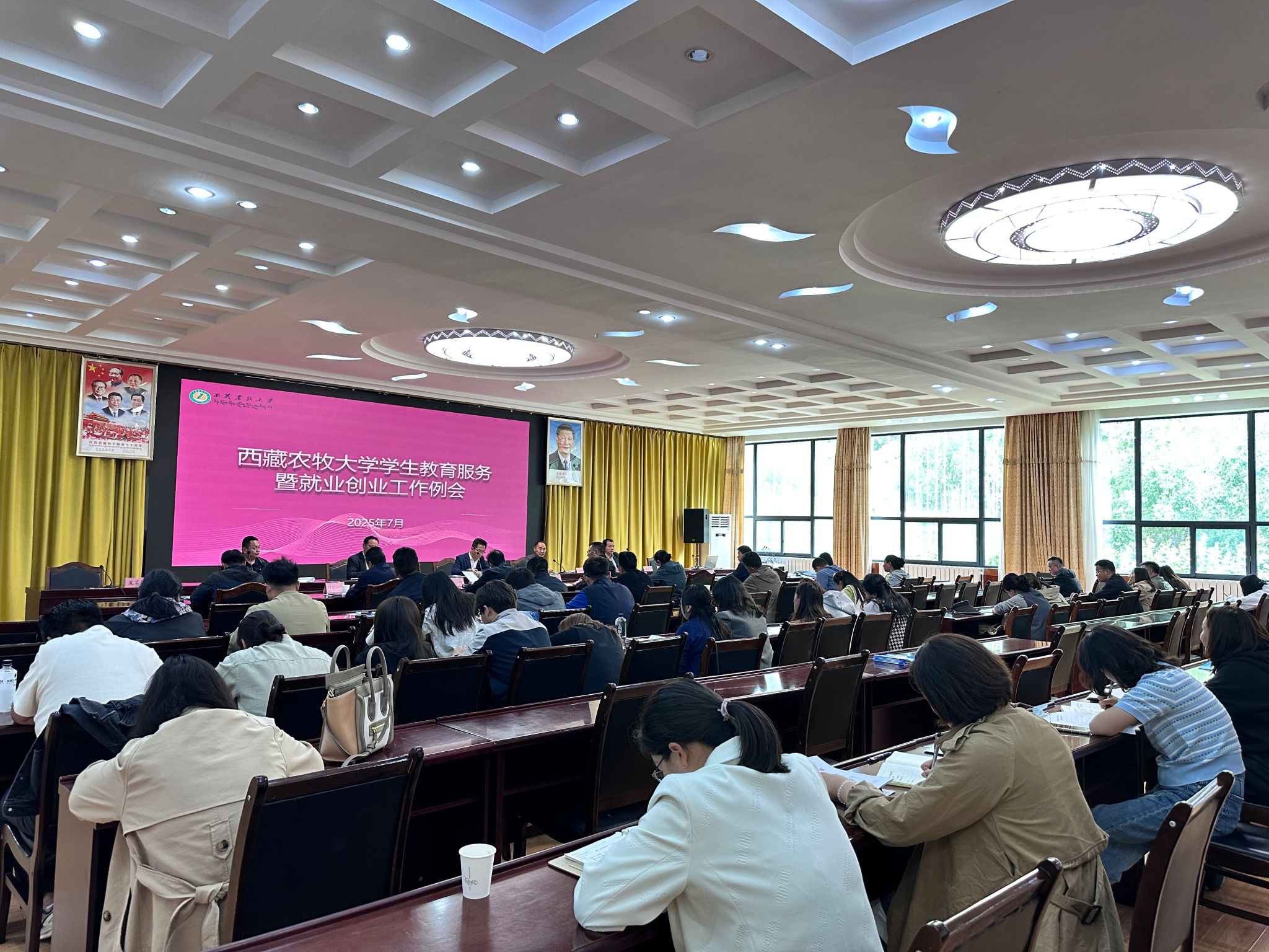 2025年7月4日,西藏农牧大学学生工作部(处)在1号办公楼中心会议室召开学生教育服务暨就业创业工作例会。党委副书记、副校长苏大鹏出席,学生工作部(处)部(处)长赵德军主持,各学院(部、所)负责人、分管学生工作领导、全体辅导员及学生工作部人员参会。