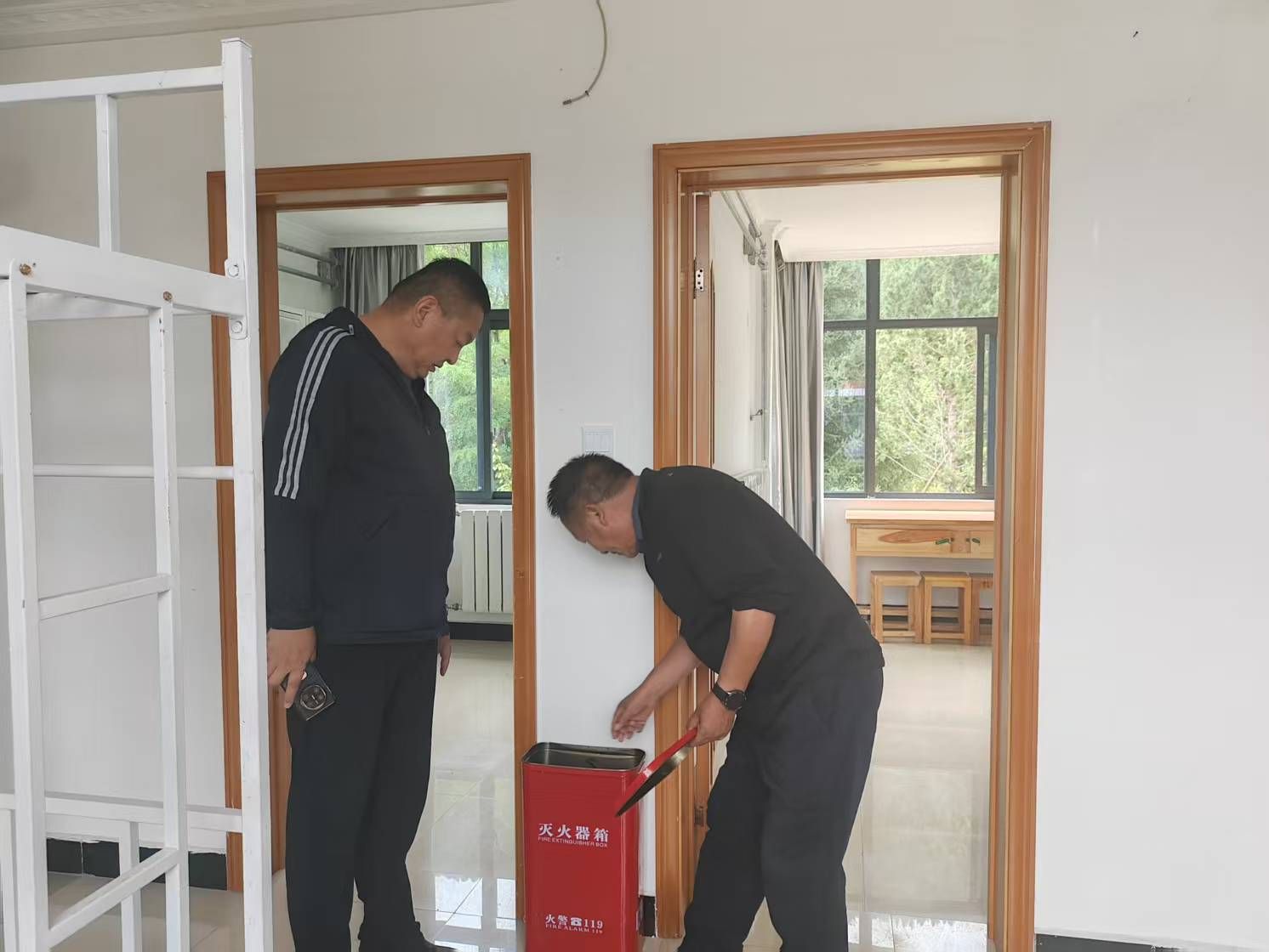 此次工作按照我校《秋季开学安全稳定工作方案》的通知要求,重点针对“一站式”社区学生宿舍是否存在消防隐患、管理漏洞、疏散通道安全出口是否畅通、是否存在违规飞线充电、是否存在电动车违规乱停乱放、消防设施是否完好等进行逐一排查。经检查,学生宿舍、“一站式”服务大厅消防设施齐全、安全出口畅通,针对宿舍可能存在的安全隐患,洛桑云旦强调:1.宿舍检查要常态化,充分发挥楼层长、宿舍长职责,时刻提醒学生注意用电用火安全;2.要强化宿舍管理员、楼长、宿舍长消防技能培训;3.禁止在宿舍用大功率电器;4.要做好宣讲宣传,不断提高学生安全防范意识。