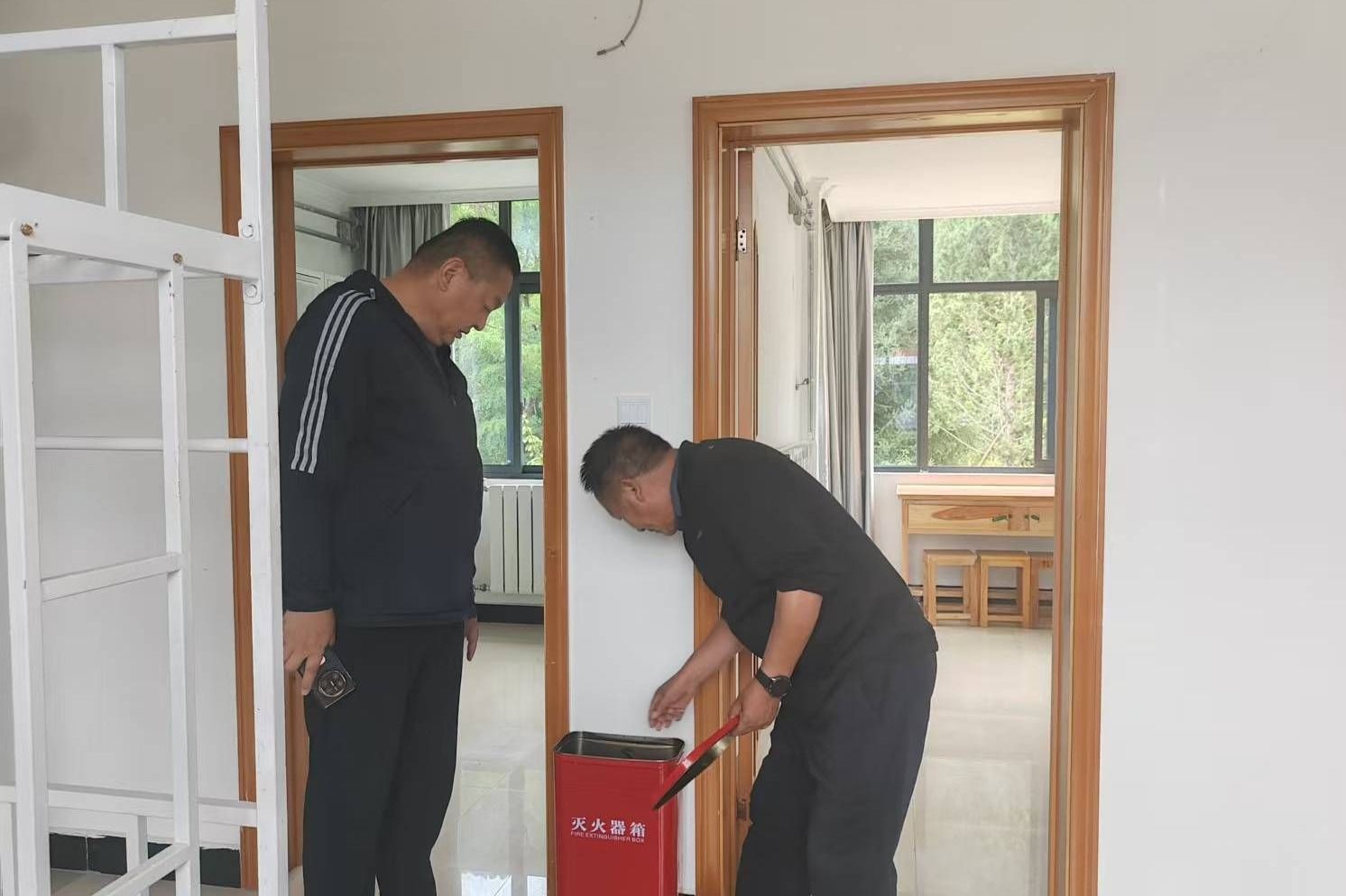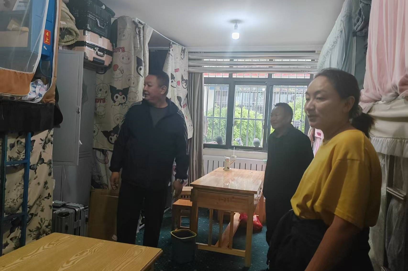 为保障新学期学生工作安全有序推进,提升安全管理水平,2025年8月20日,学生工作部联合安全保卫处对“一站式”社区学生宿舍、“一站式”服务大厅等场所开展消防安全自查工作。学生工作部(处)副部(处)长洛桑云旦、安全保卫处副处长贡嘎带队,学生工作部(处)宿舍管理科成员参加了此次检查。