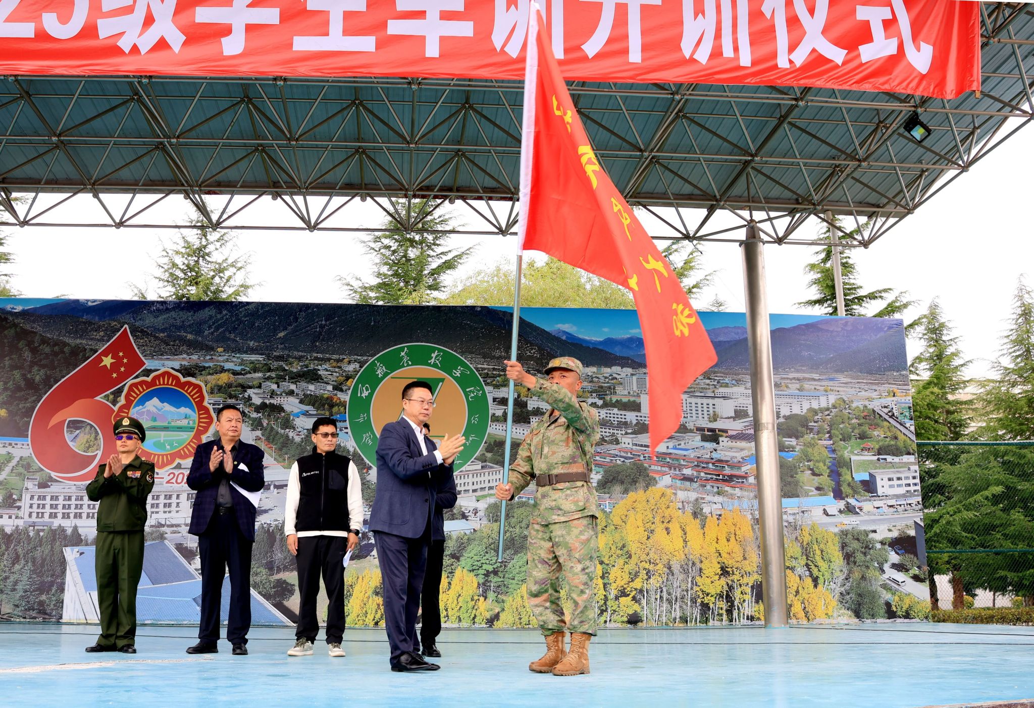 9月1日上午,西藏农牧大学2025级新生军训开训仪式在校体育场隆重举行。校党委副书记王程、林芝军分区领导出席,学校学生军训工作领导小组成员、全体承训教官、负责军训工作的辅导员以及全体2025级新生参加开训仪式。