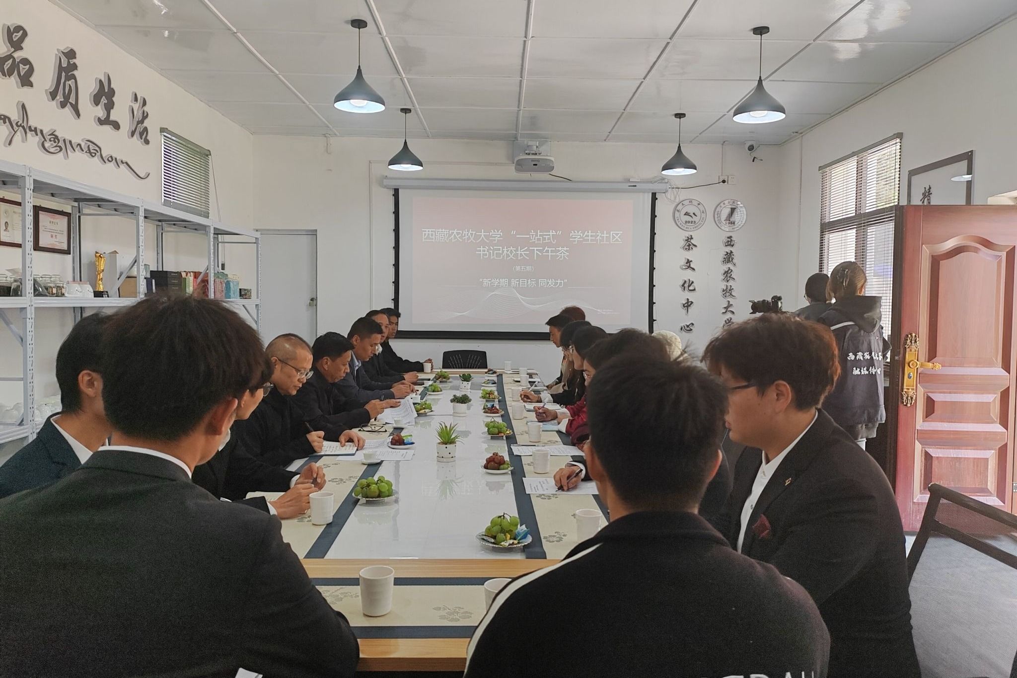9月1日下午,学生工作部(处)在“一站式”学生社区茶文化中心组织开展第五期“书记·校长下午茶”活动。校党委委员、纪委书记尼玛、相关职能部门负责人与13名学生代表围桌而坐,以“新学期 新目标 同发力”为主题开展深度对话交流。活动由学生工作部(处)副部(处)长李新堂主持。