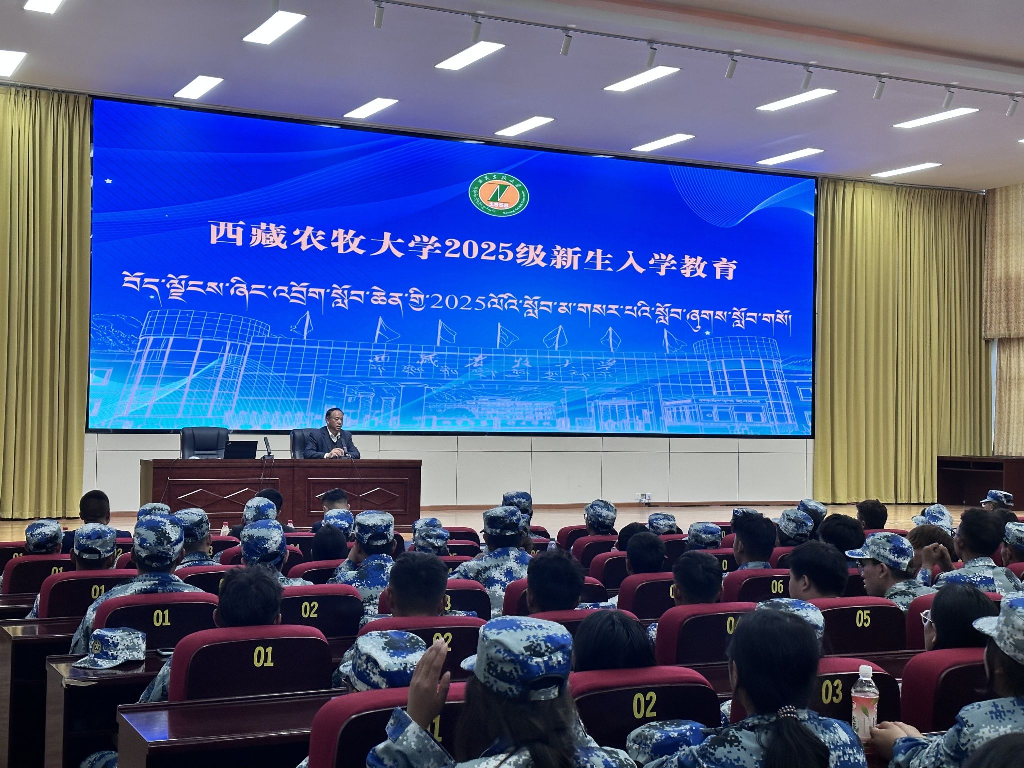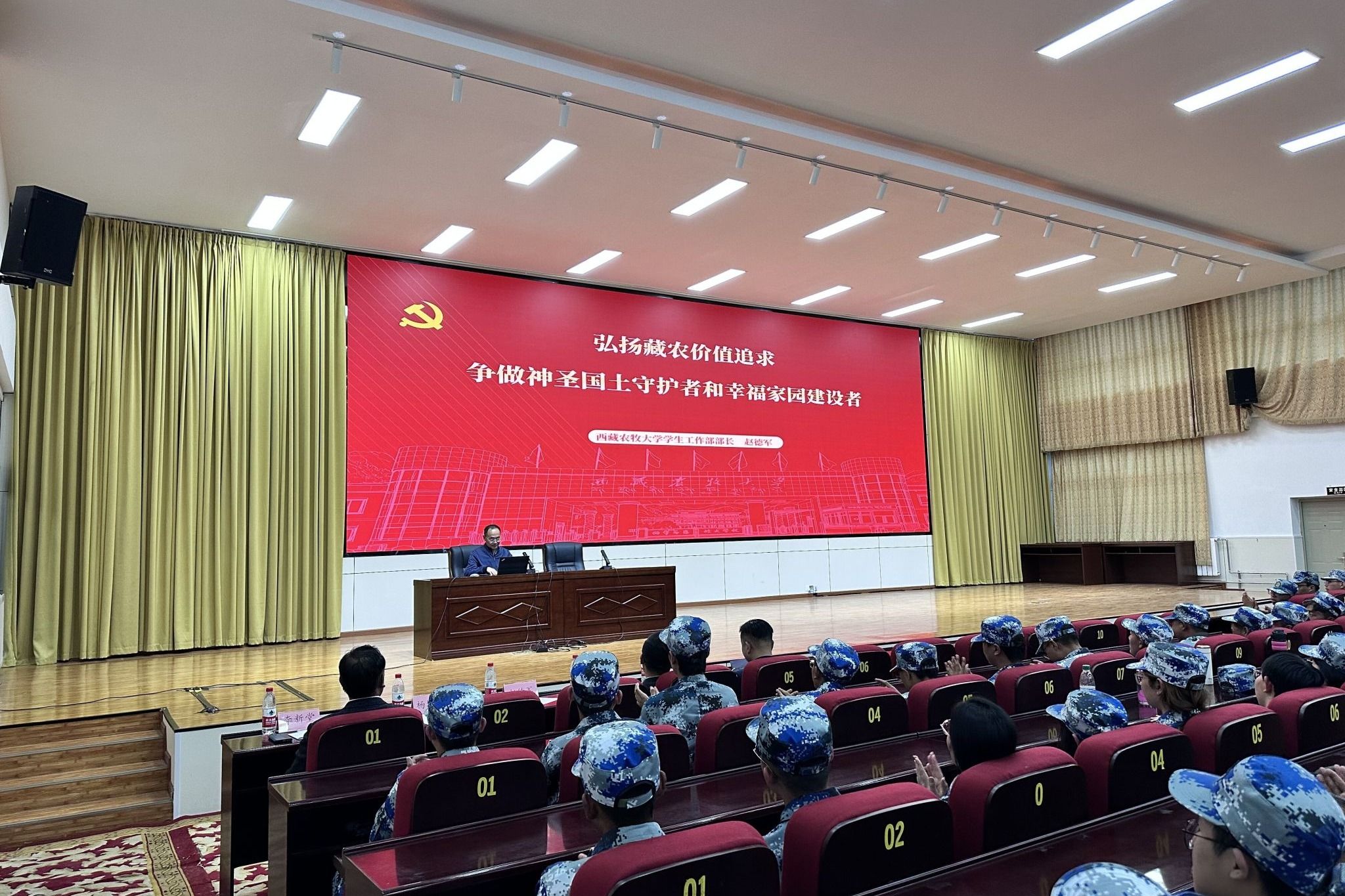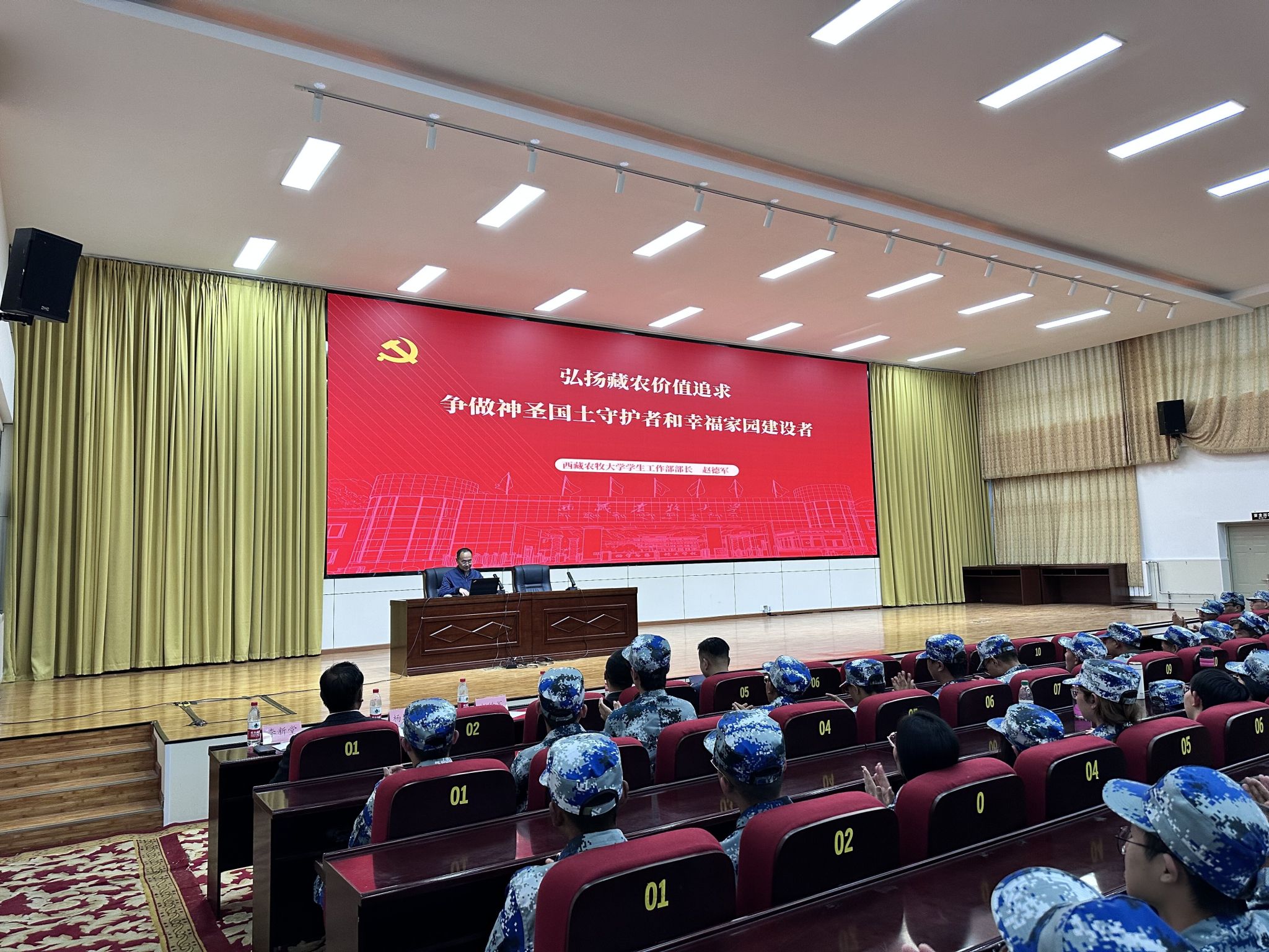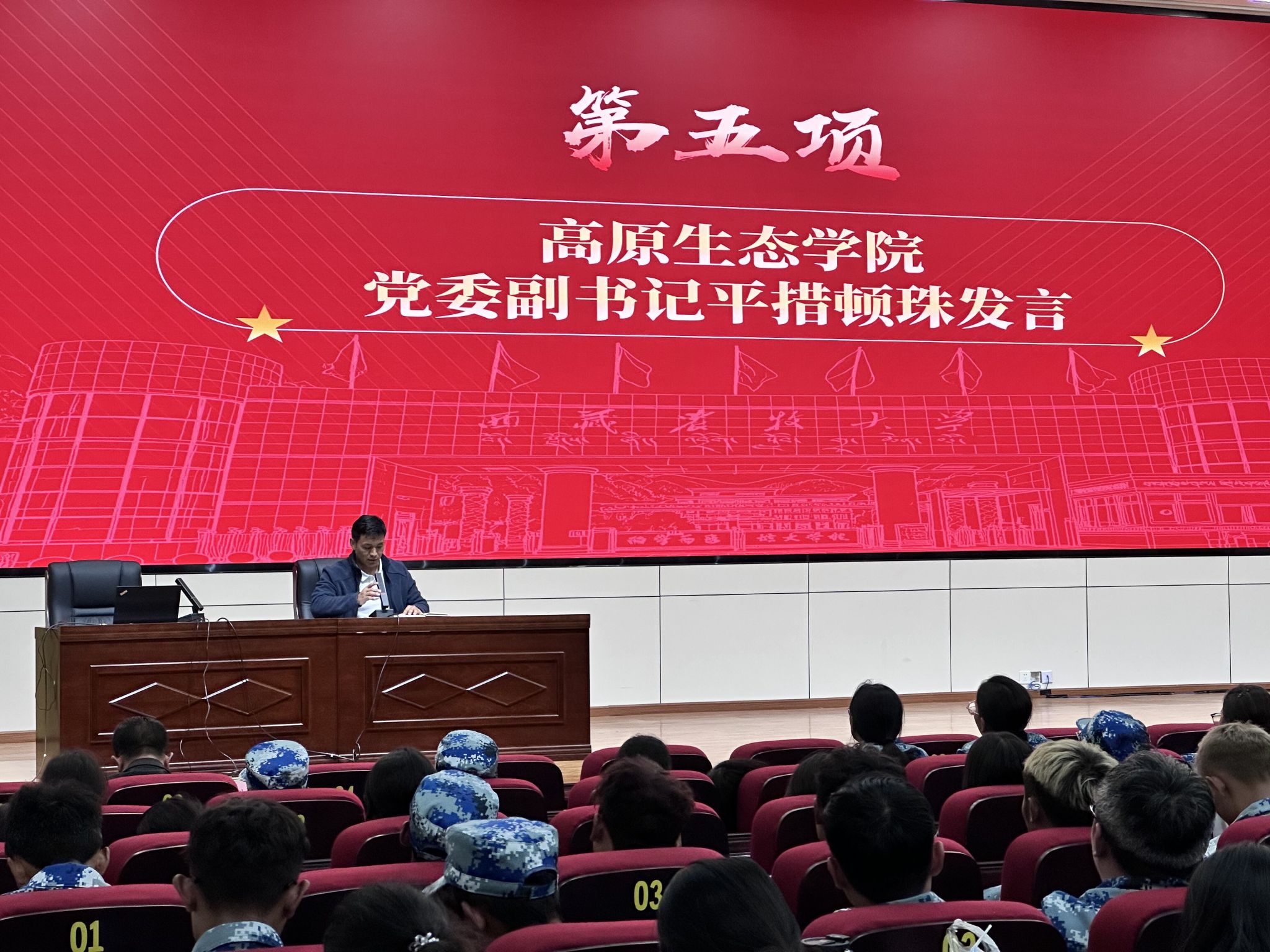 在发言环节,学生工作部部长赵德军,分别从“党建铸牢、政治第一,学在藏农、学习第一,五育融通、安全第一,就创兴藏、就业第一”四个方面,强调了大学期间良好行为规范和综合素质培养的重要性,鼓励新生积极参与学校活动,锻炼自己,全面发展,弘扬藏农价值追求,争做神圣国土守护者和幸福家园建设者。各学院书记、院长、分管学生工作副书记、副院长,分别针对本学院的专业特色、学科优势、师资力量以及未来发展方向等进行了详细介绍,鼓励新生在大学期间勤奋学习专业知识,积极投身实践,为未来的职业发展和个人成长打下坚实基础,向新生传递了学校、学院对他们的殷切期望和关怀。最后,学生工作部副部长李新堂进行总结发言,着重强调安全和职业生涯规划的重要性,希望新生们能够尽快适应大学生活,融入学校这个大家庭,珍惜大学时光,扣好大学第一粒扣子,努力实现自己的梦想。