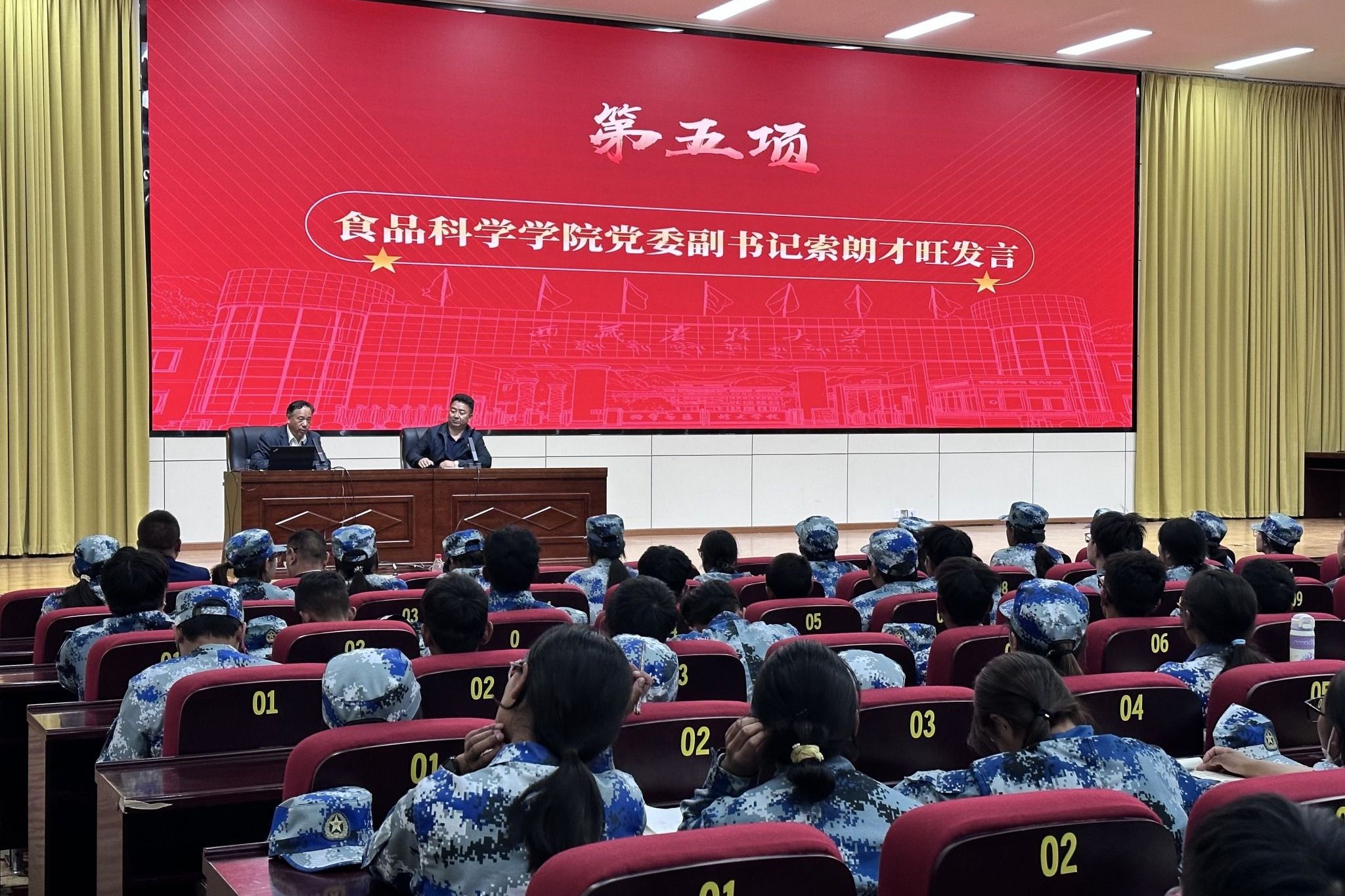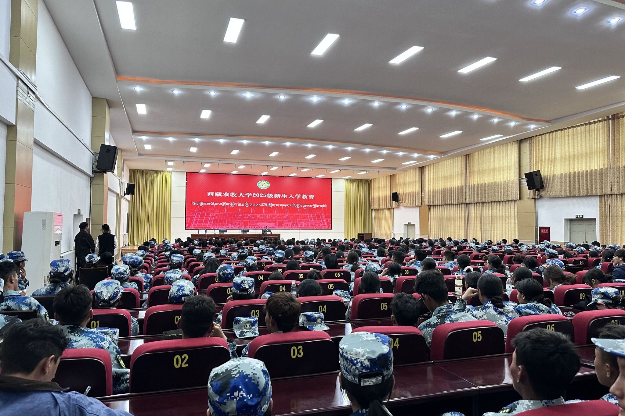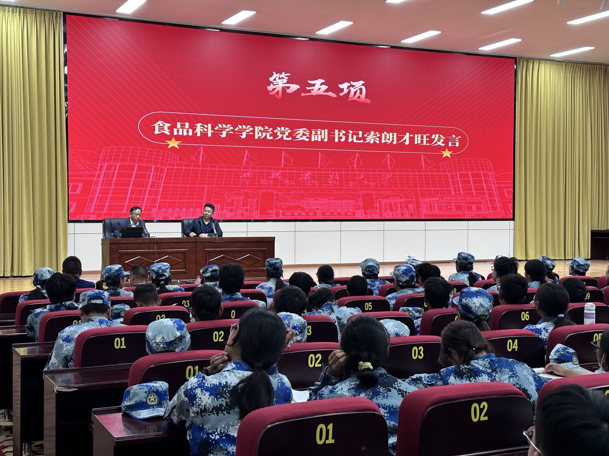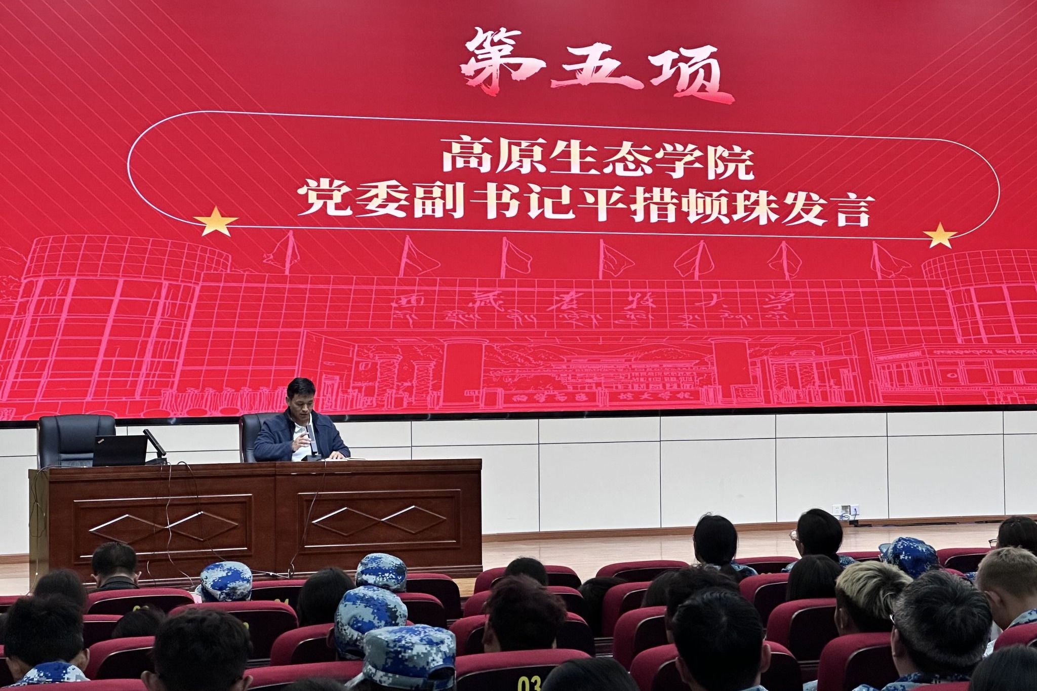 在发言环节,学生工作部部长赵德军,分别从“党建铸牢、政治第一,学在藏农、学习第一,五育融通、安全第一,就创兴藏、就业第一”四个方面,强调了大学期间良好行为规范和综合素质培养的重要性,鼓励新生积极参与学校活动,锻炼自己,全面发展,弘扬藏农价值追求,争做神圣国土守护者和幸福家园建设者。各学院书记、院长、分管学生工作副书记、副院长,分别针对本学院的专业特色、学科优势、师资力量以及未来发展方向等进行了详细介绍,鼓励新生在大学期间勤奋学习专业知识,积极投身实践,为未来的职业发展和个人成长打下坚实基础,向新生传递了学校、学院对他们的殷切期望和关怀。最后,学生工作部副部长李新堂进行总结发言,着重强调安全和职业生涯规划的重要性,希望新生们能够尽快适应大学生活,融入学校这个大家庭,珍惜大学时光,扣好大学第一粒扣子,努力实现自己的梦想。