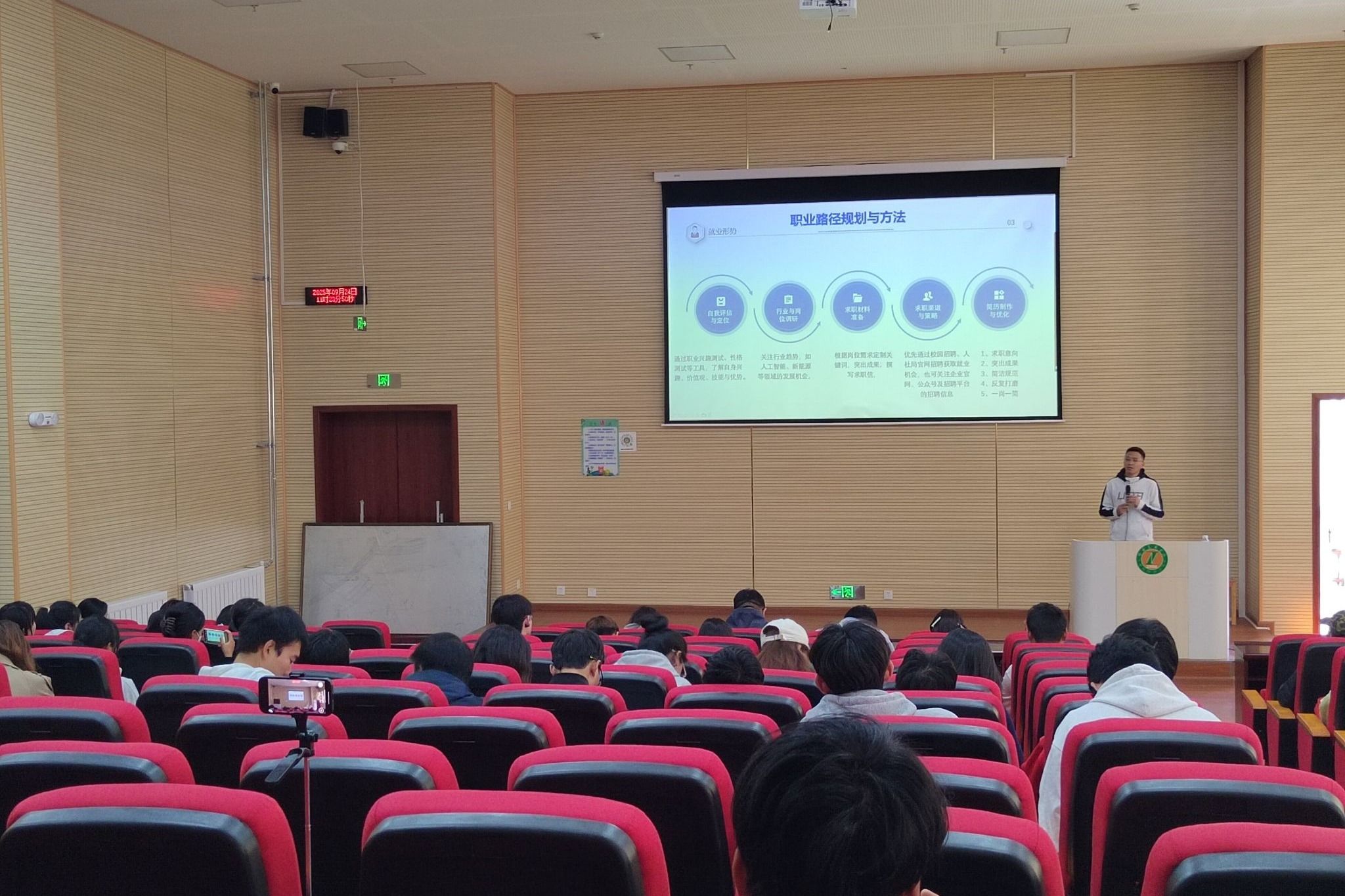 会上,宣讲组围绕就业形势、创业分享、能力提升、职业指导、就业创业政策等方面向同学们做了详细讲解,并结合我校专业情况,提出高原使命与胜任力价值,进一步分析区域人才需求,为同学们解析就业目标和努力方向。宣讲团成员与同学们深入交流,对同学们提出的疑问进行耐心细致的解答。会场气氛热烈、成效显著。