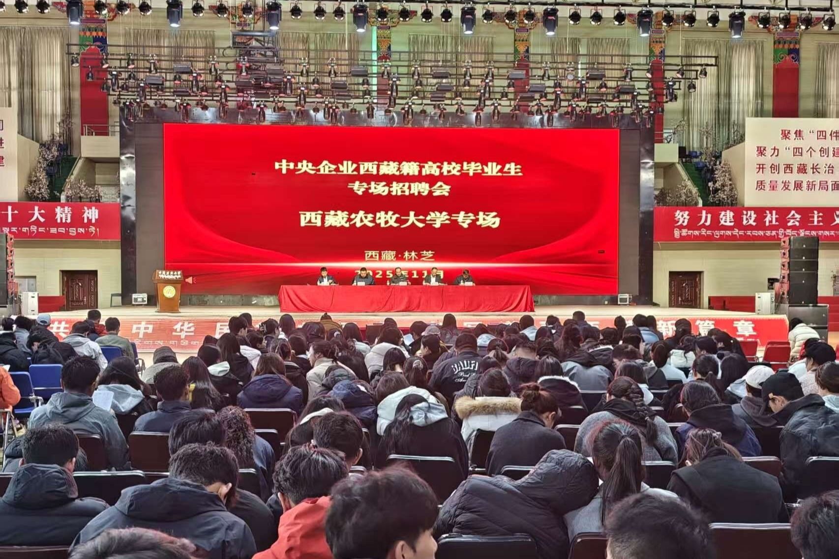 宣讲会上,西藏林芝籍优秀毕业生广东珠海金湾液化天然气有限公司保数芬老师,就自身求职及央企就业工作经验进行了分享。中铝集团青海公司招聘老师就公司背景、岗位设置、福利待遇进行了深入宣讲。