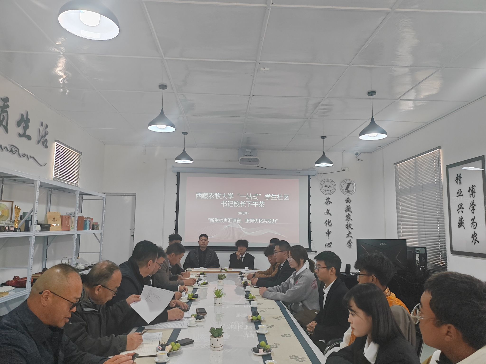 为深入了解新生入学以来的学习生活情况,倾听学生心声,共建美好校园,11月10日下午,学生工作部(处)在“一站式”学生社区茶文化中心组织开展了第七期“书记·校长下午茶”活动。校党委委员、校长助理刘晓丽出席活动,学校相关职能部门负责人与来自各学院的14名2025级新生代表围桌而坐,以“新生心声汇谏言,服务优化共发力”为主题进行了面对面、心贴心的深入交流。活动由学生工作部(处)副部(处)长洛桑云旦主持。
